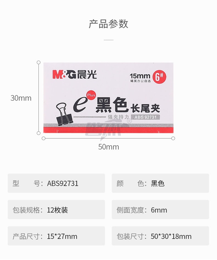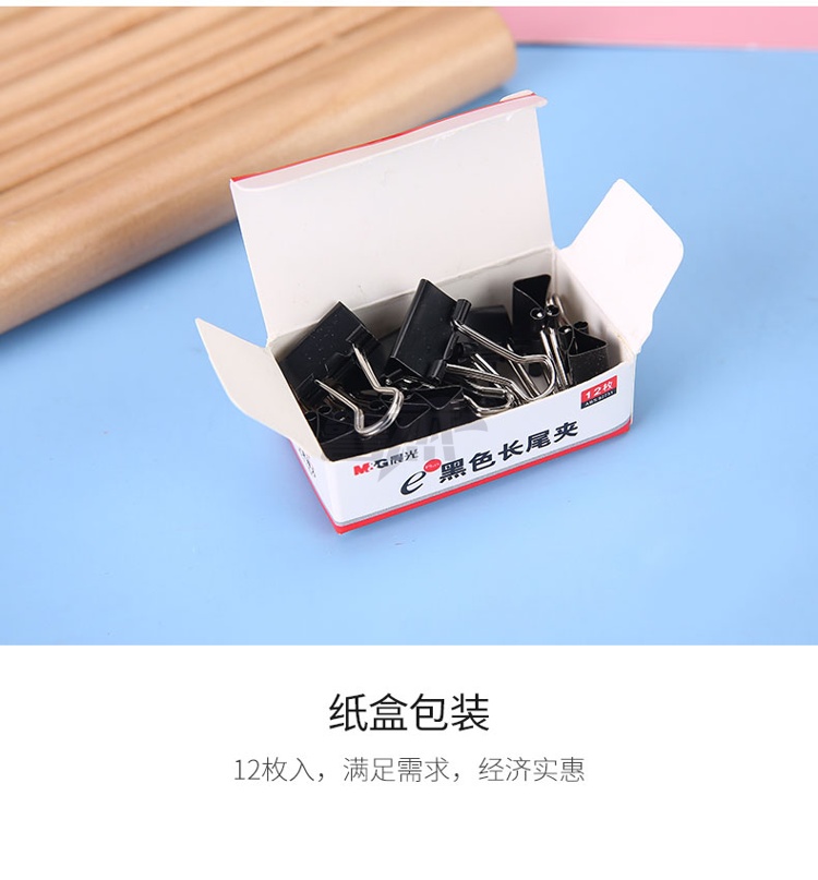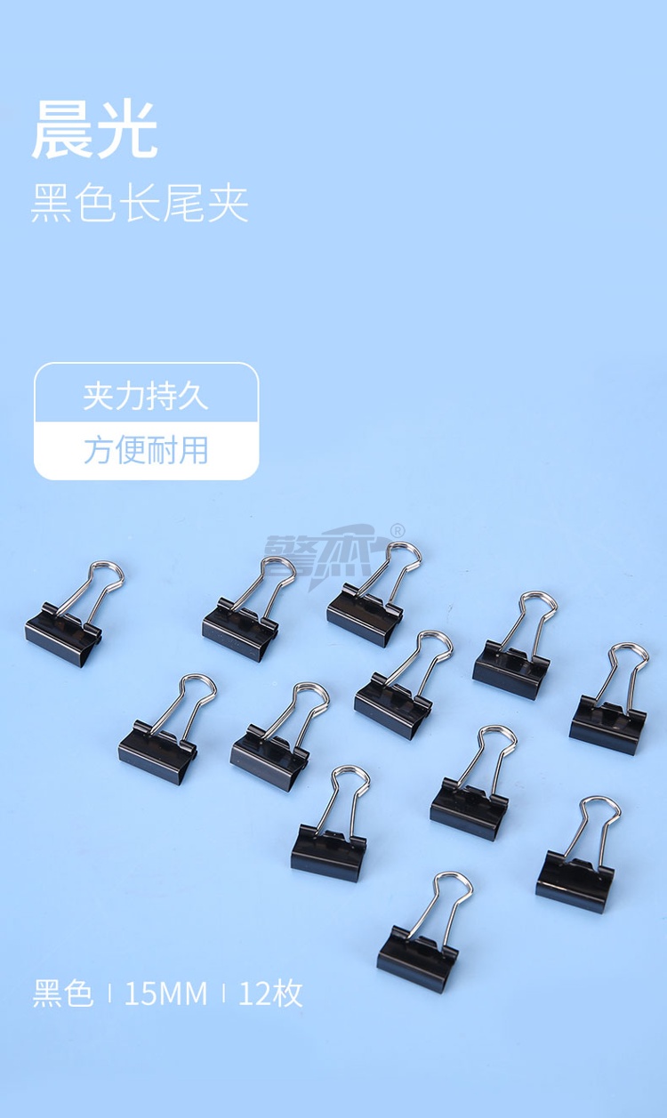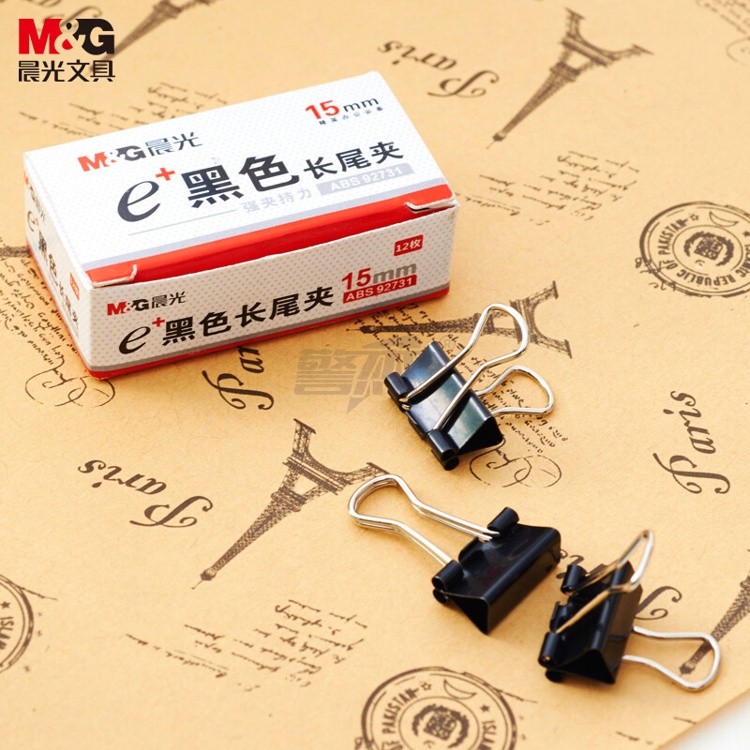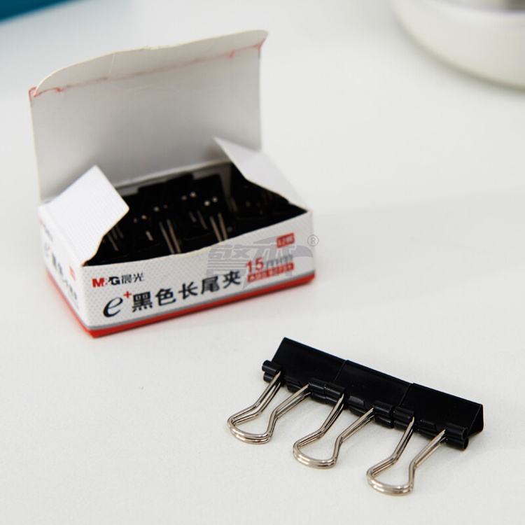 产品名称 : 晨光(M&G)文具6#15mm 12只/盒 黑色长尾夹 小号金属票据夹 Eplus系列办公燕尾夹 ABS92731