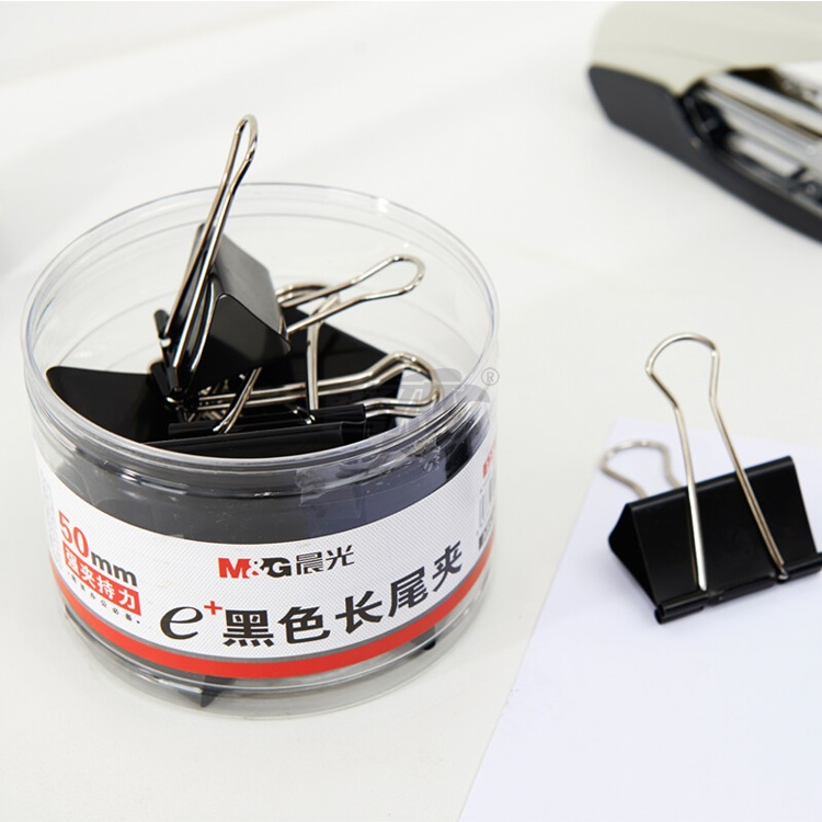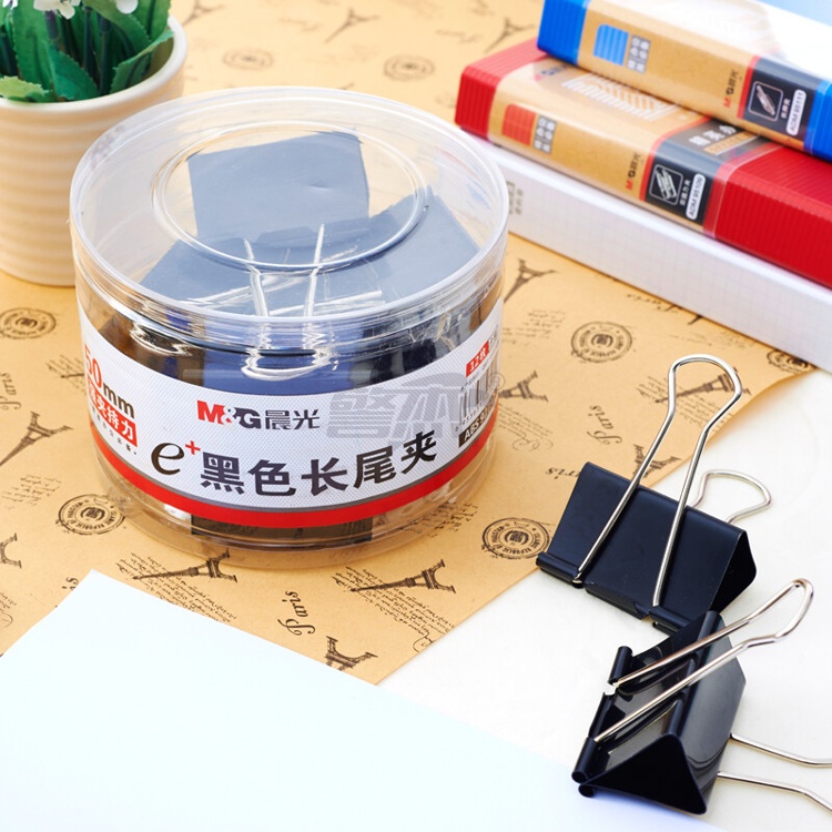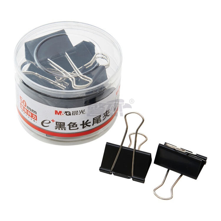 产品名称 : 晨光(M&G)文具1#50mm 12只/罐 黑色长尾夹 大号金属票据夹 Eplus系列办公燕尾夹 ABS92732