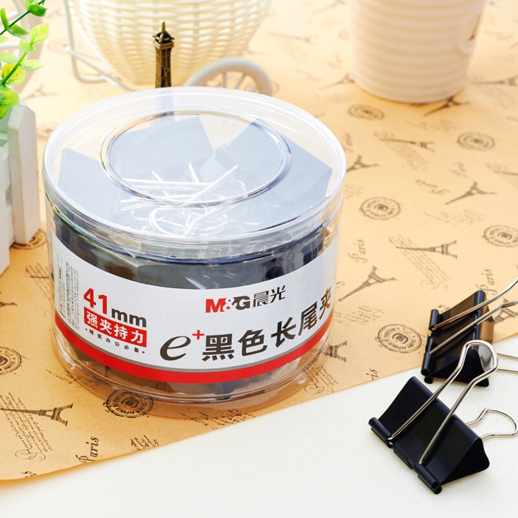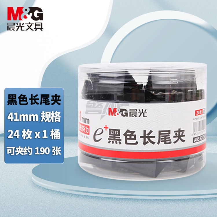 产品名称 : 晨光(M&G)文具2#41mm 24只/罐 黑色长尾夹 大号金属票据夹 Eplus系列办公燕尾夹 ABS92733