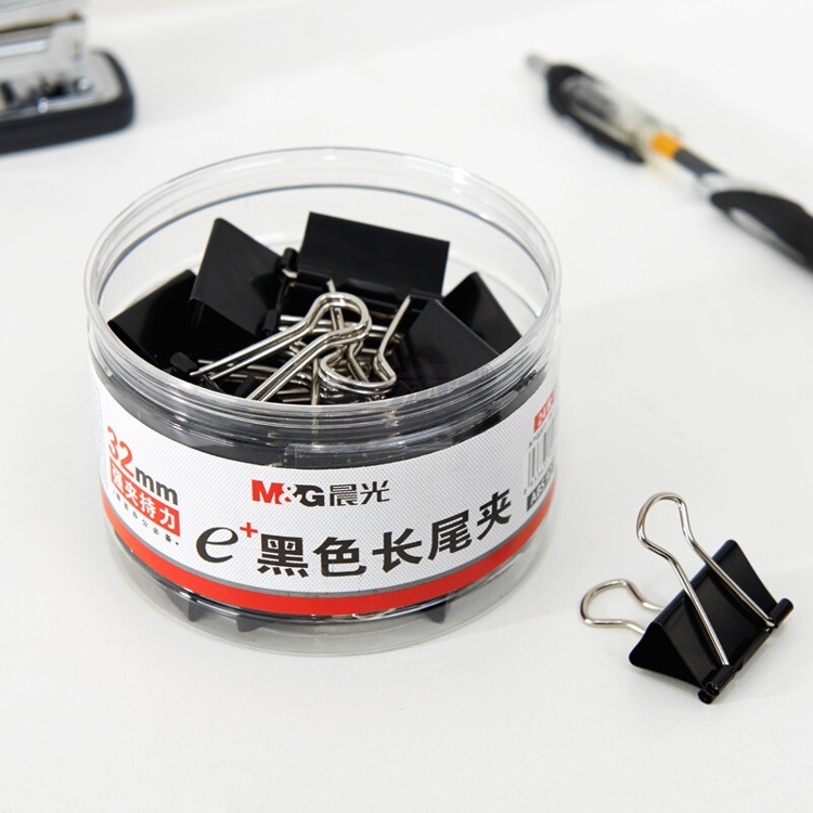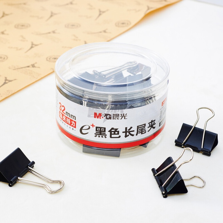 产品名称 : 晨光(M&G)文具3#32mm 24只/罐 黑色长尾夹 中号金属票据夹 Eplus系列办公燕尾夹 ABS92734