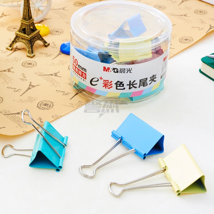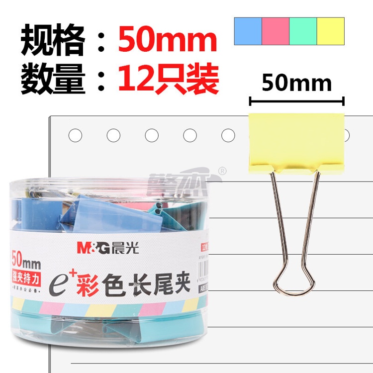产品名称 : 晨光(M&G)文具50mm彩色长尾夹 金属票据夹 Eplus系列办公燕尾夹 12只/罐ABS92738
