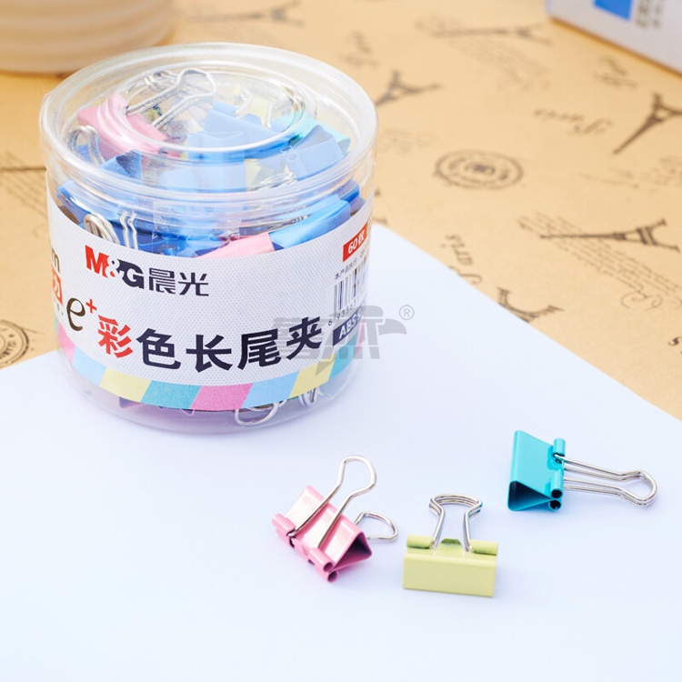 产品名称 : 晨光(M&G)文具6#15mm 60只/罐 彩色长尾夹 小号金属票据夹 Eplus系列办公燕尾夹 ABS92743