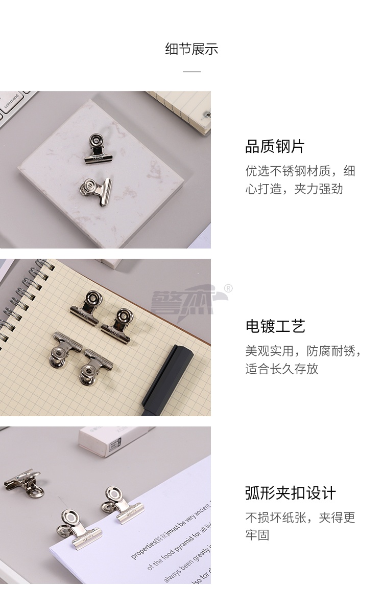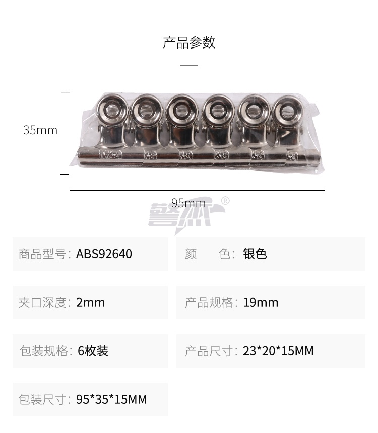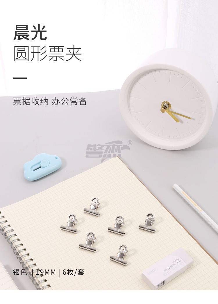 产品名称 : 晨光(M&G)文具19mm银色圆形票夹 办公资料整理夹 不锈钢财务票据夹 6个装ABS92640