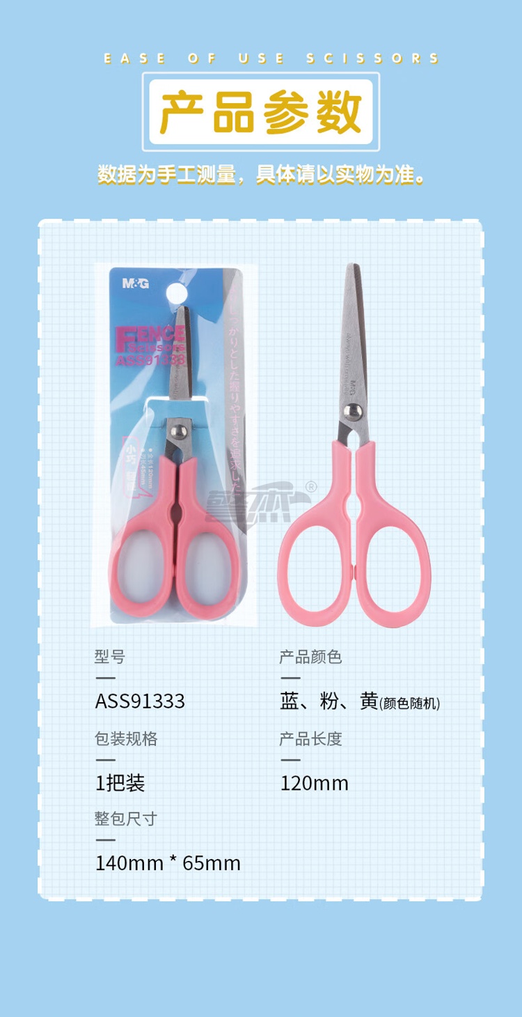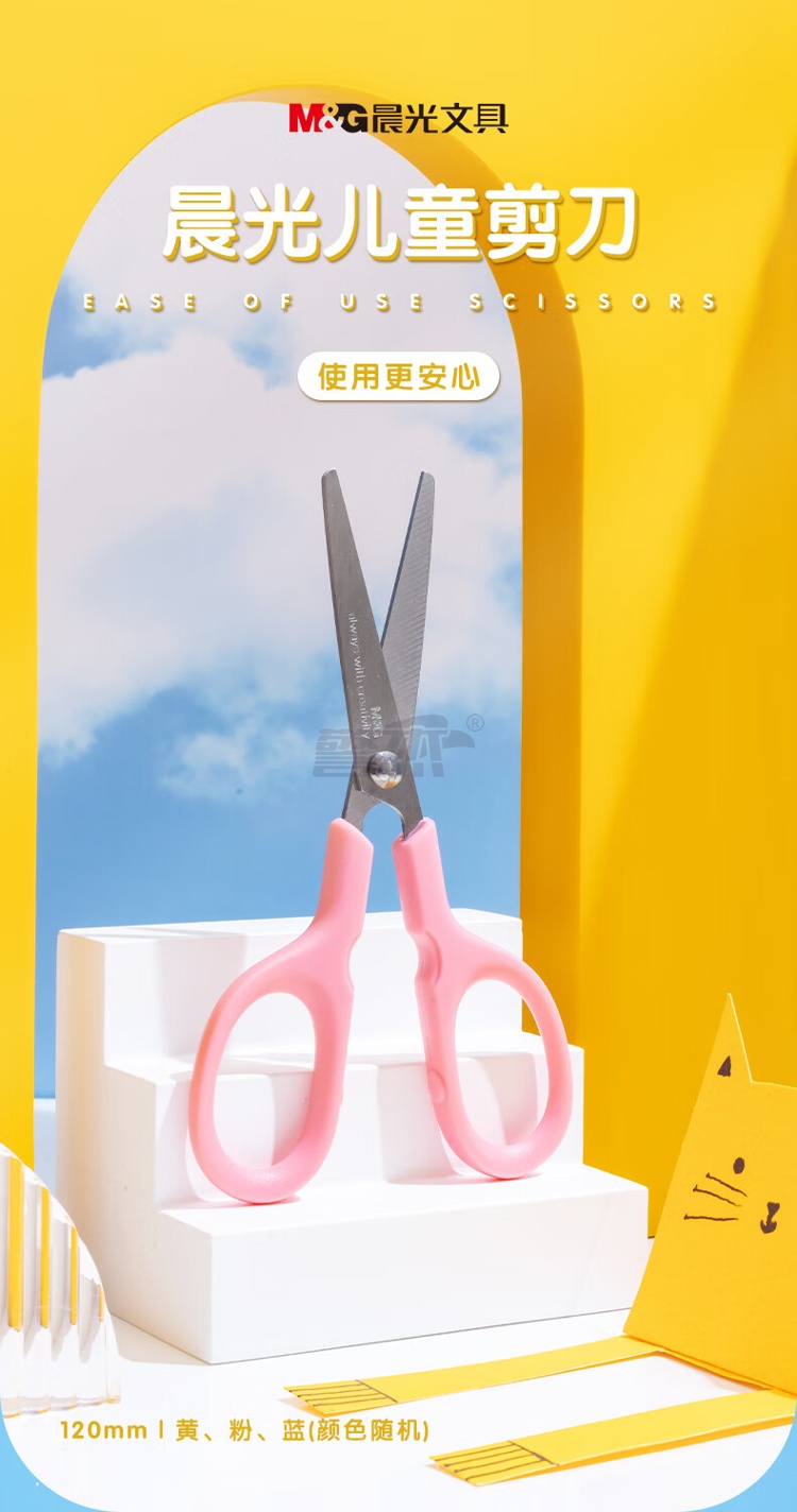 产品名称 : 晨光文具120mm儿童剪刀 学生手工剪纸刀家用剪子 单把装颜色随机ASS91333