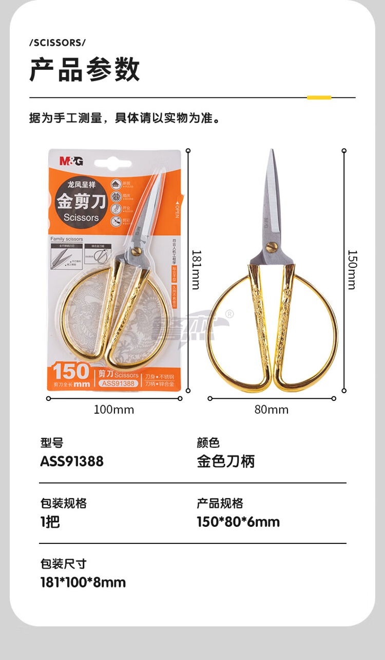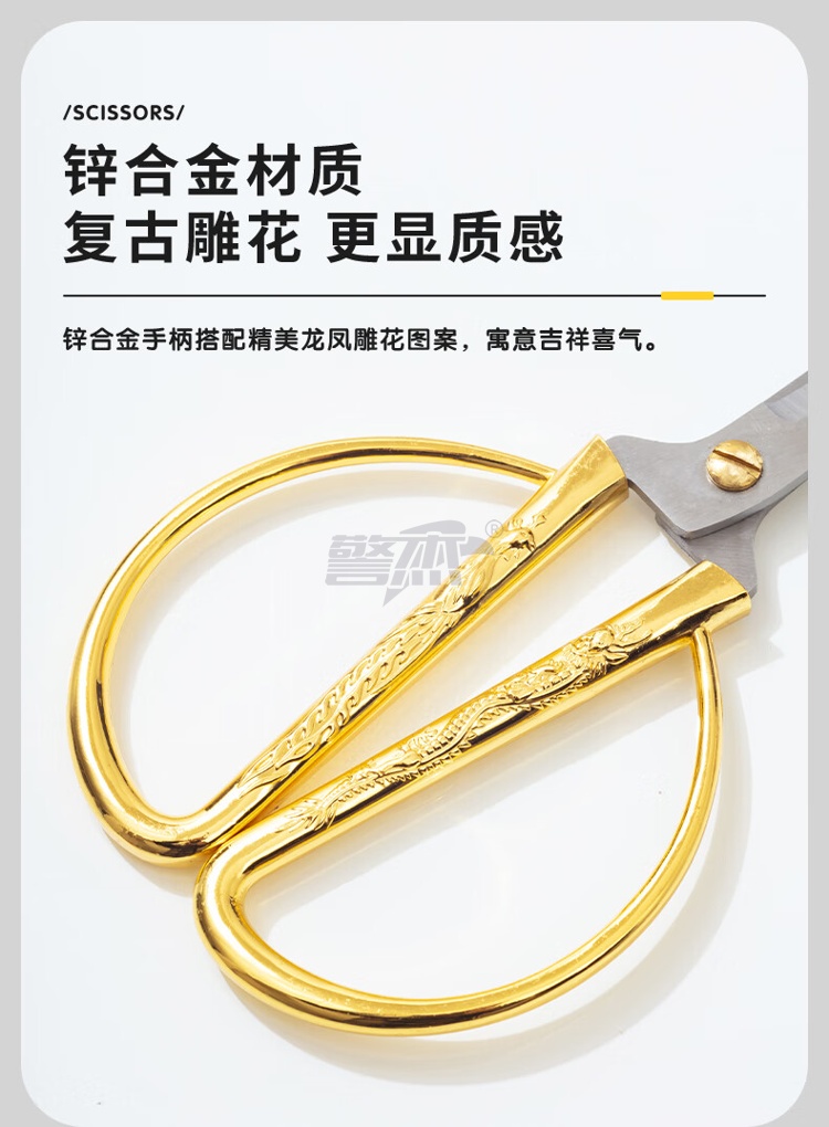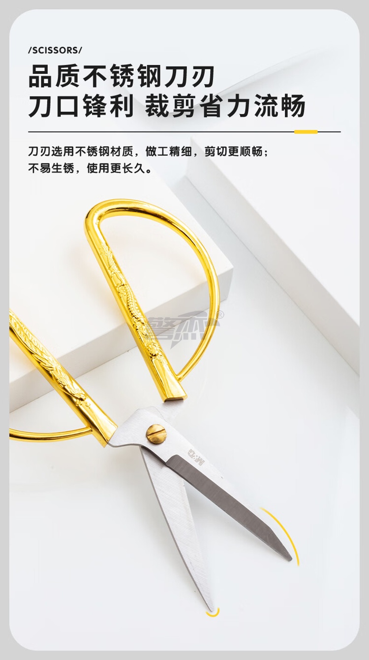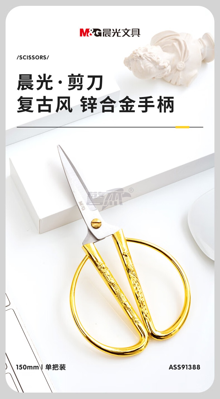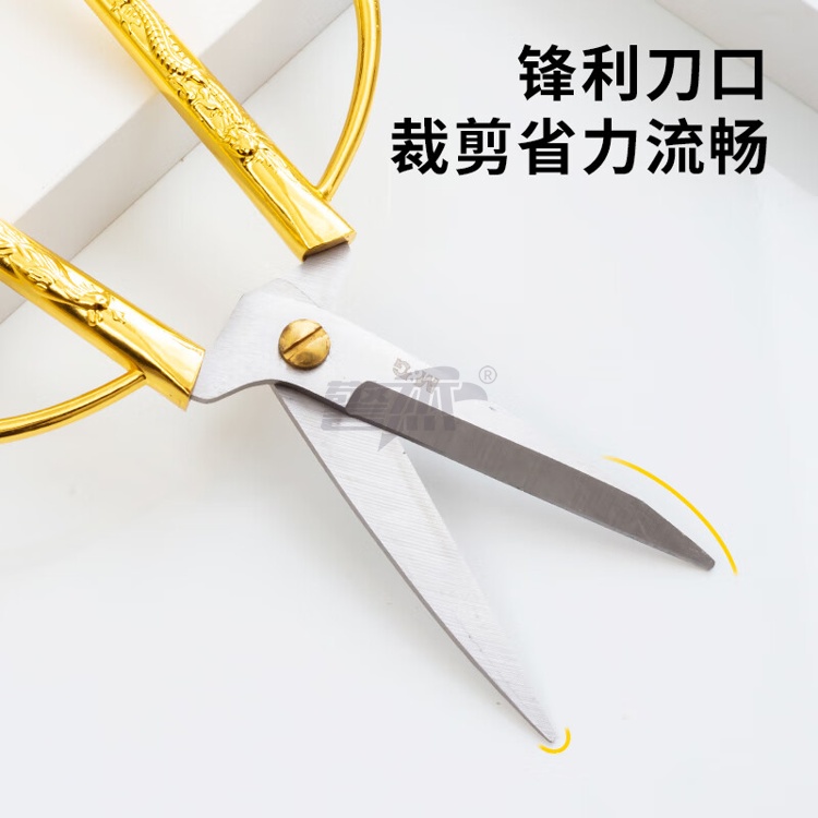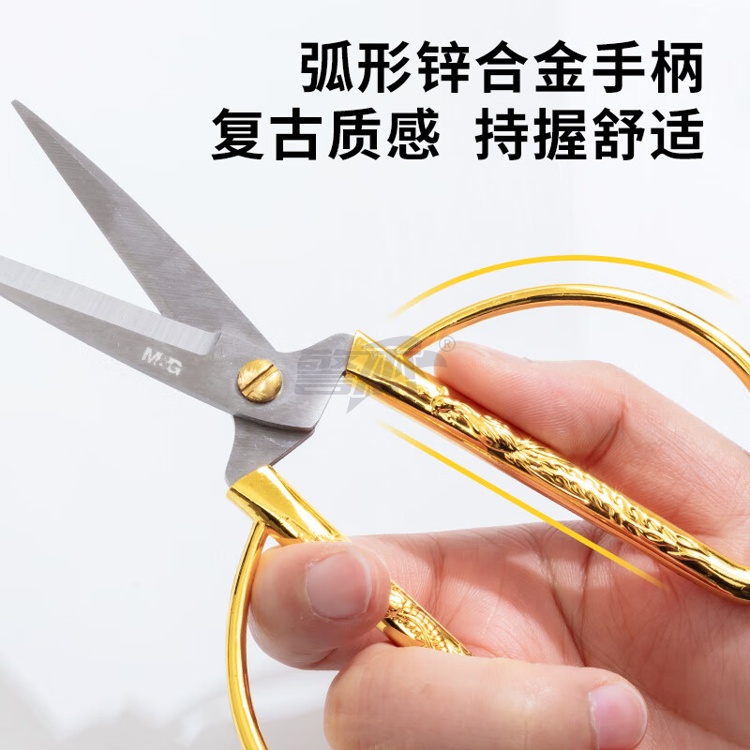 产品名称 : 晨光文具150mm龙凤呈祥剪刀 家用厨房生活剪彩金剪刀 金色单把装ASS91388