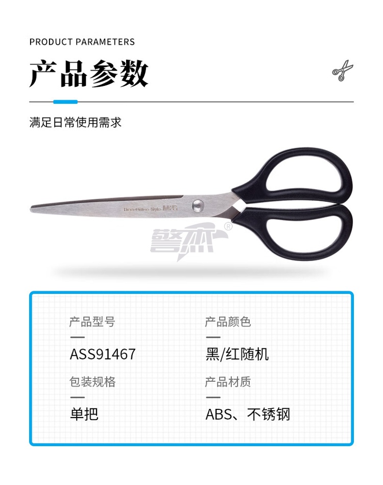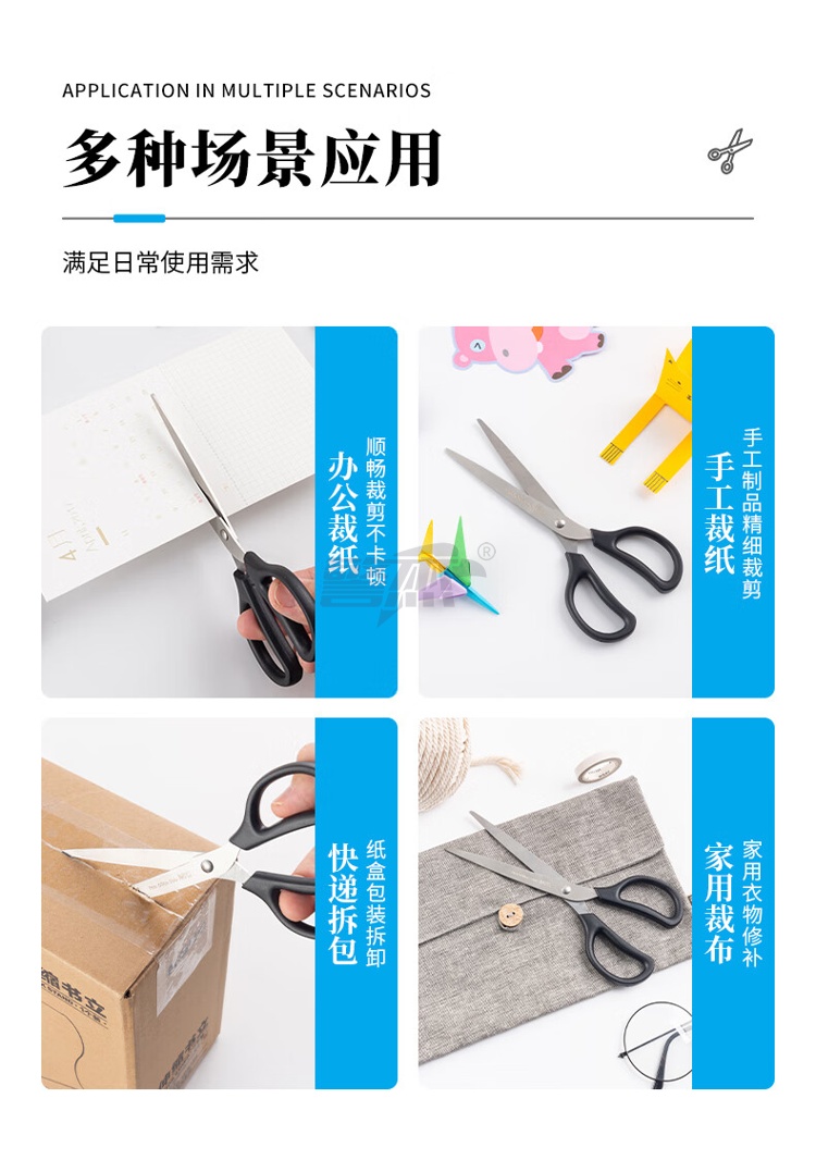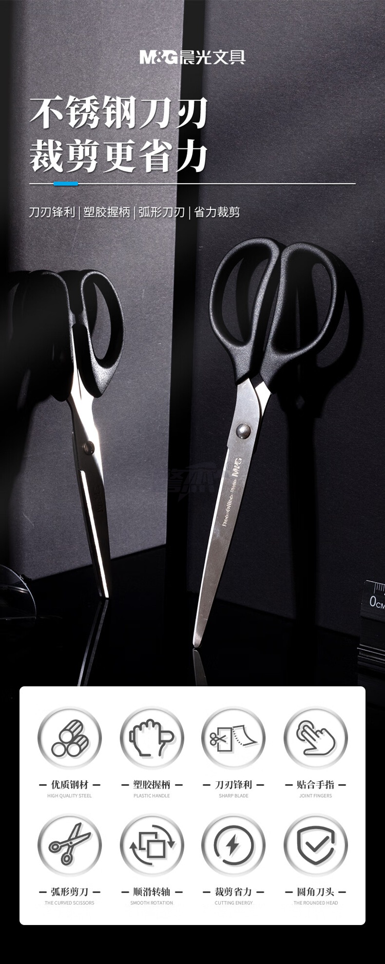 产品名称 : 晨光文具180mm办公家用生活剪刀 中号手工剪纸刀 办公用品 单把装颜色随机ASS91467