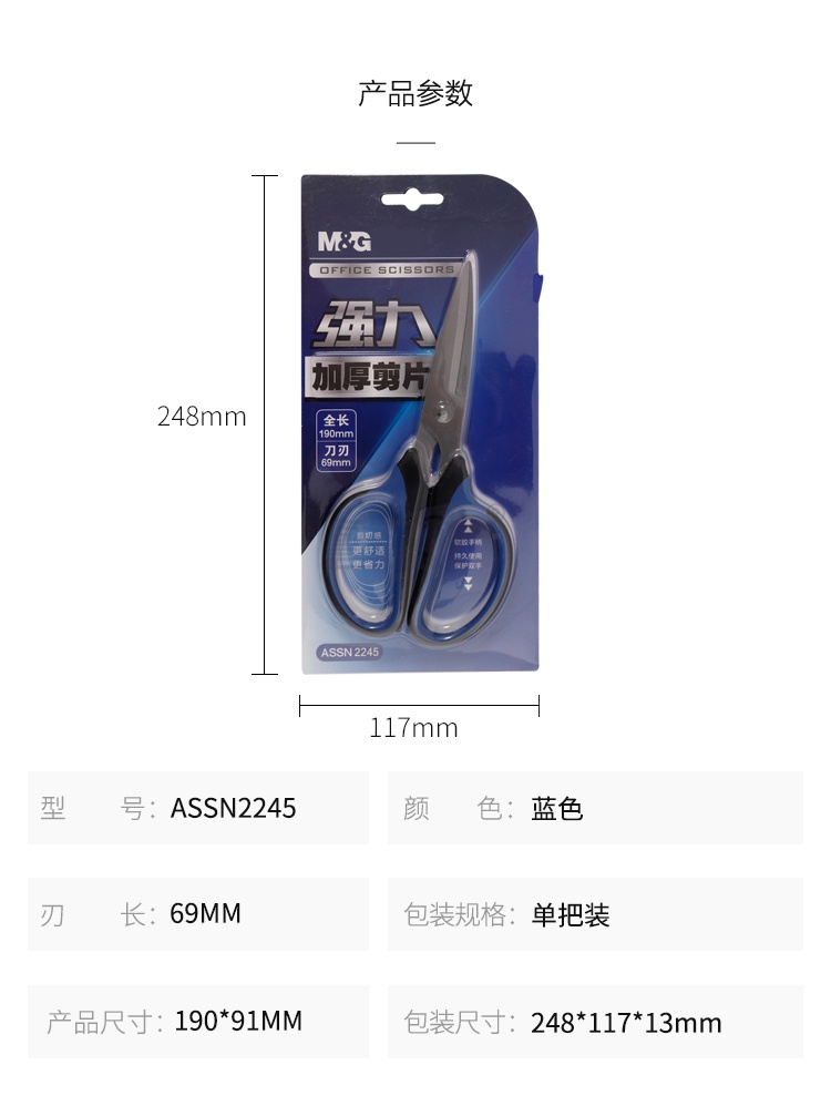 产品名称 : 晨光文具190mm家用强力剪刀 厨房生活手工剪纸刀 软胶手柄舒适 办公剪子 蓝色单把装ASSN2245