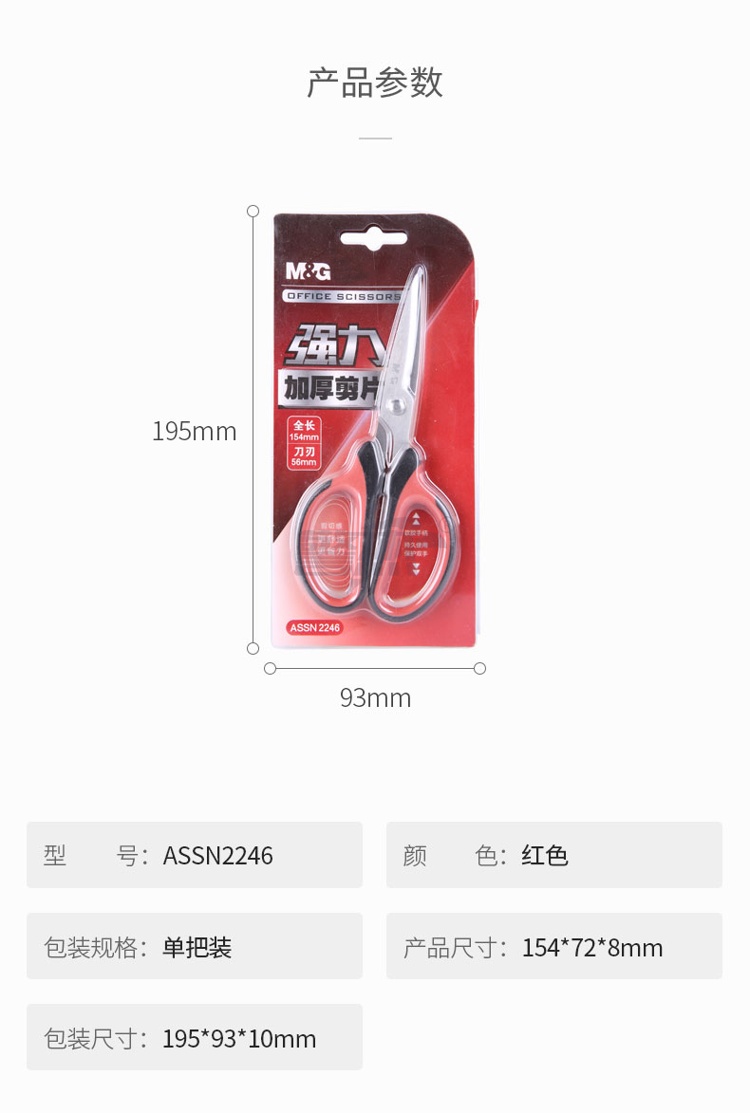 产品名称 : 晨光文具154mm家用强力剪刀 厨房生活手工剪纸刀 软胶手柄舒适 办公剪子 红色单把装ASSN2246