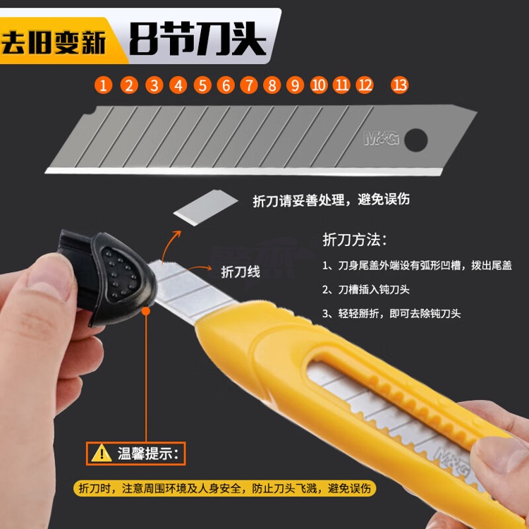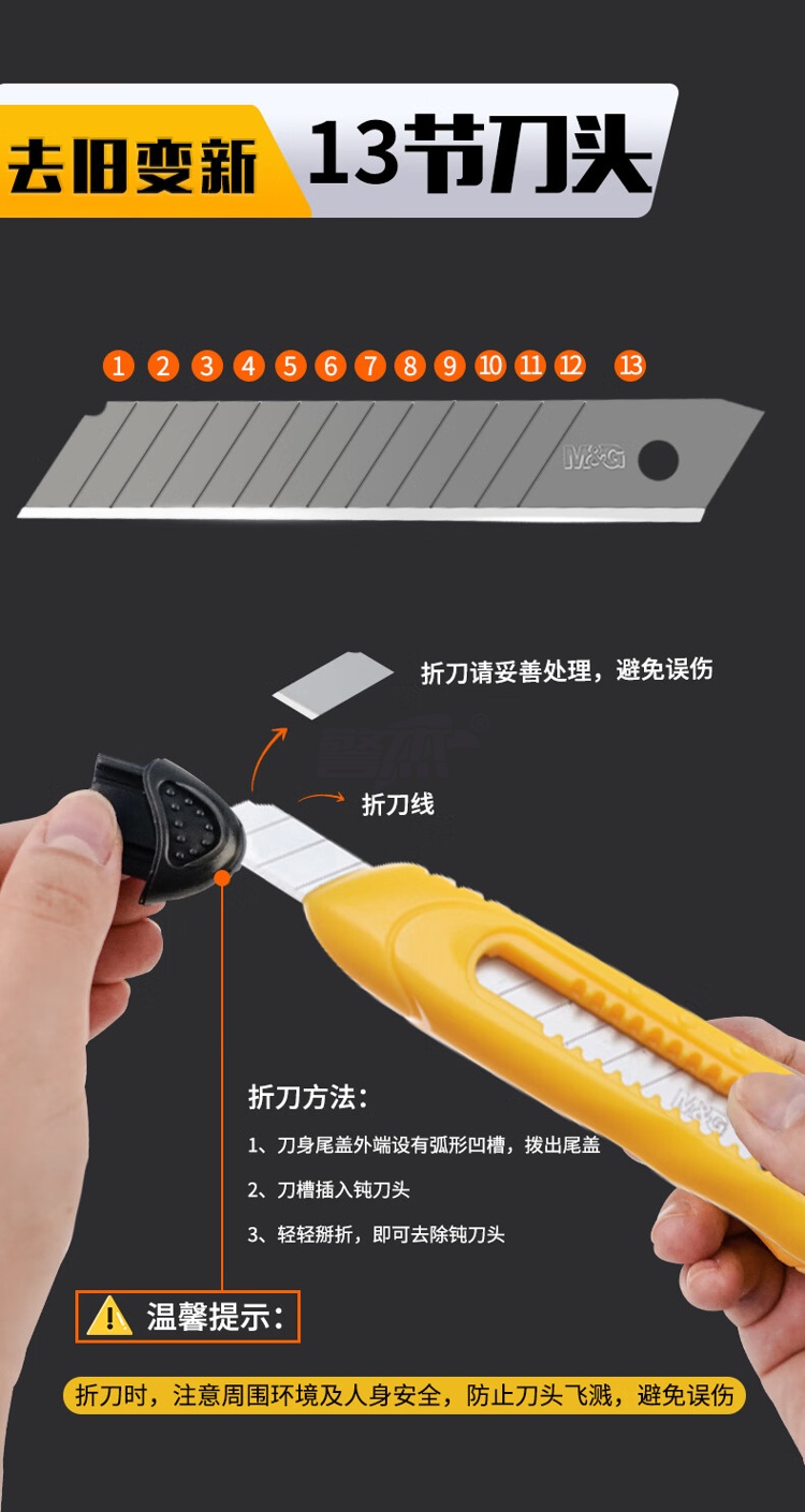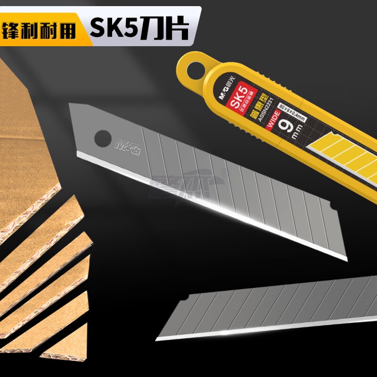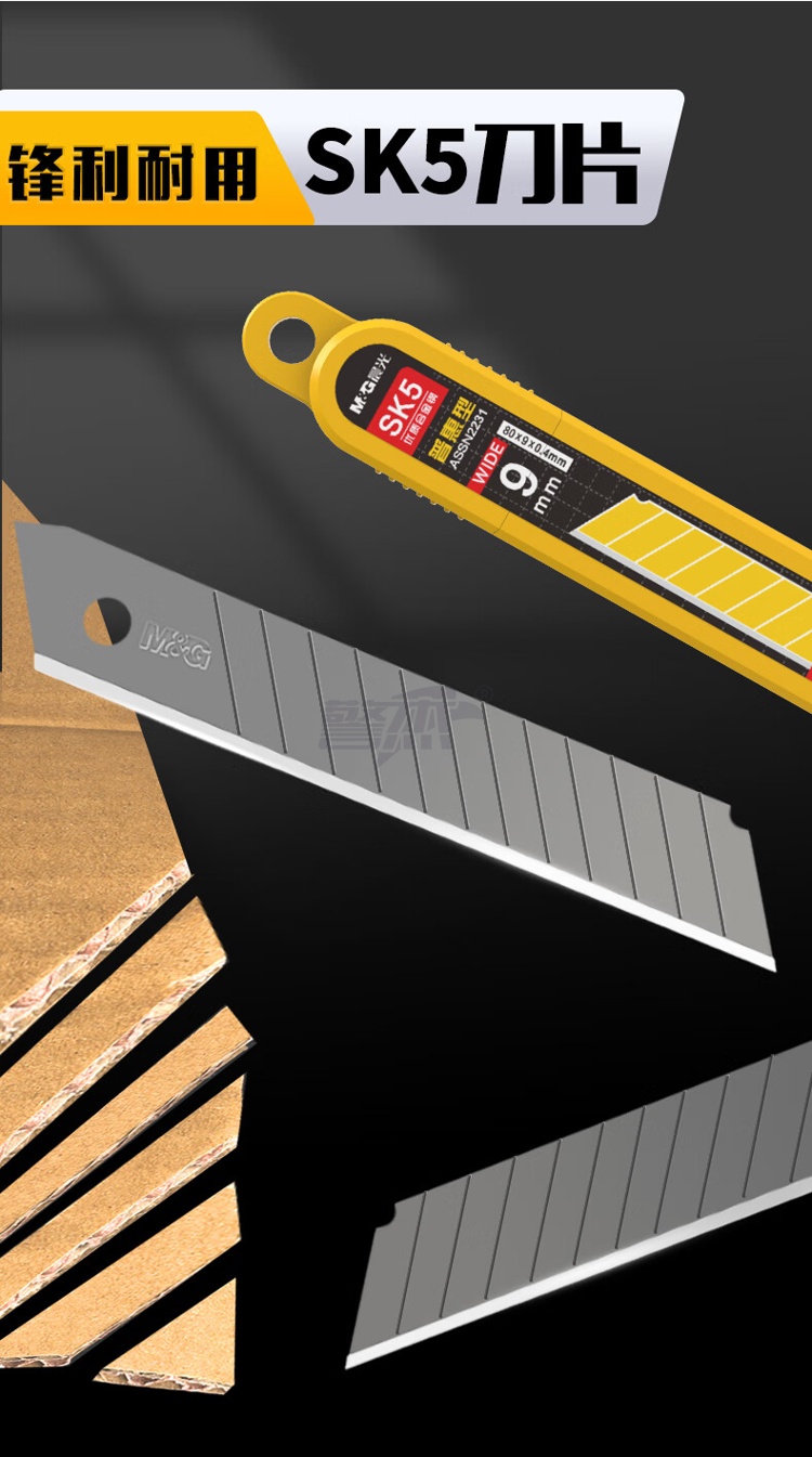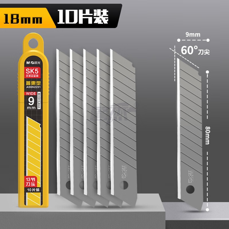 产品名称 : 晨光(M&G)文具9mm小号美工刀片 13刀头SK5合金钢刀片/替换刀片 办公用品 10片/盒 单盒装ASSN2231