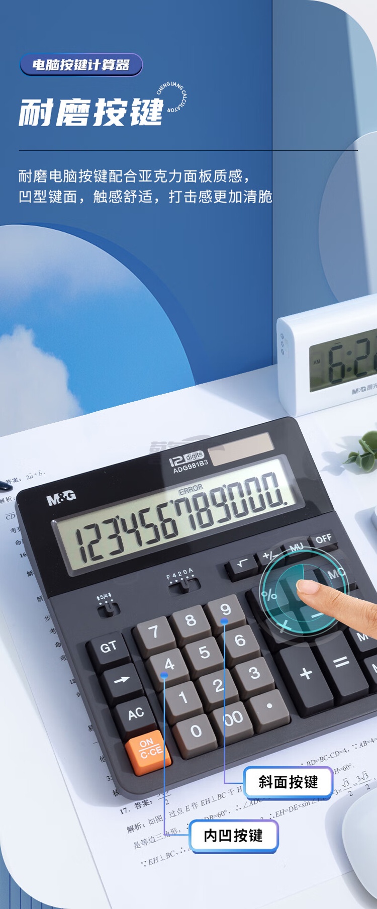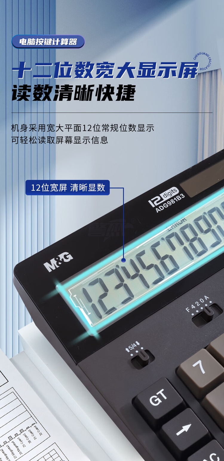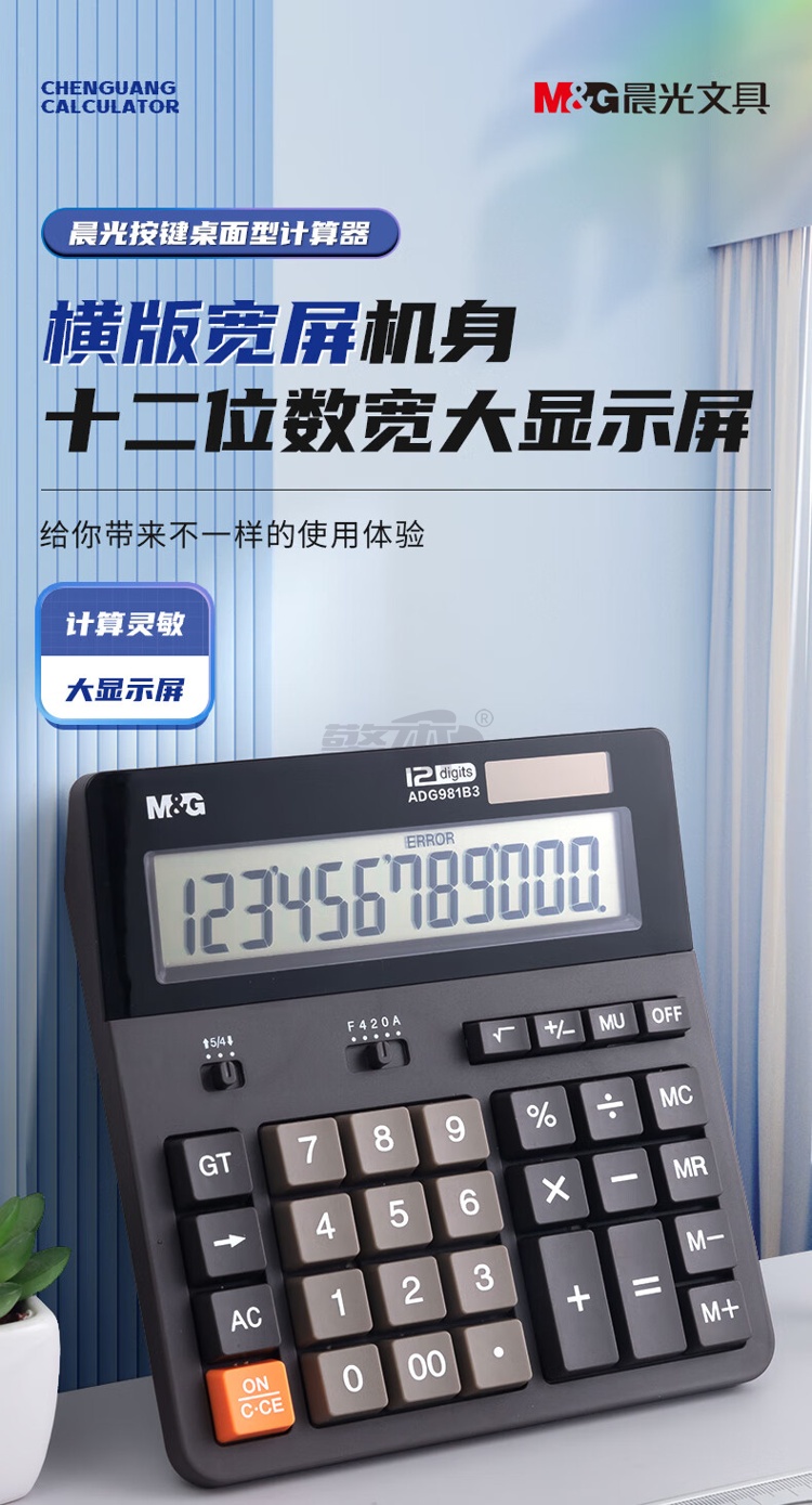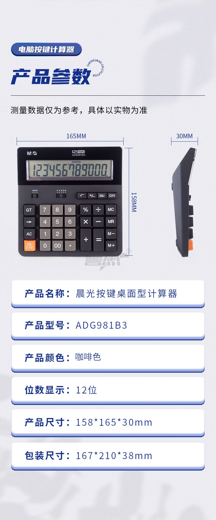 产品名称 : 晨光(M&G) 计算器 电脑按键桌面办公计算机 办公用品12位大屏幕计算器 咖啡色单个装ADG981B3H13