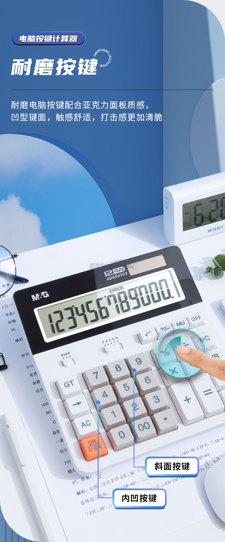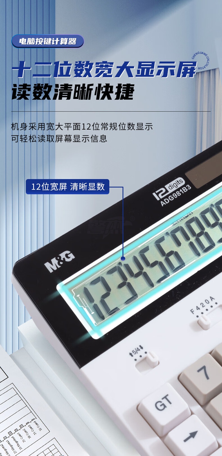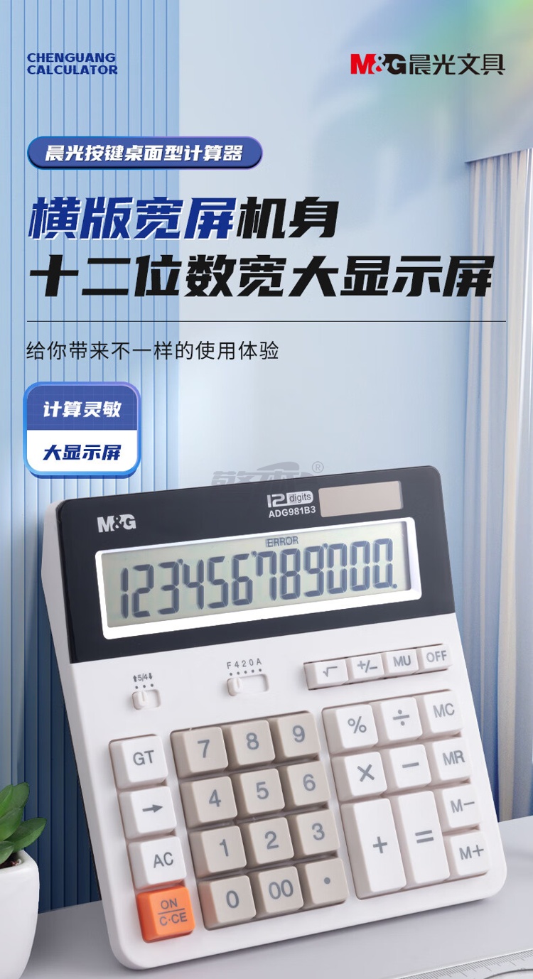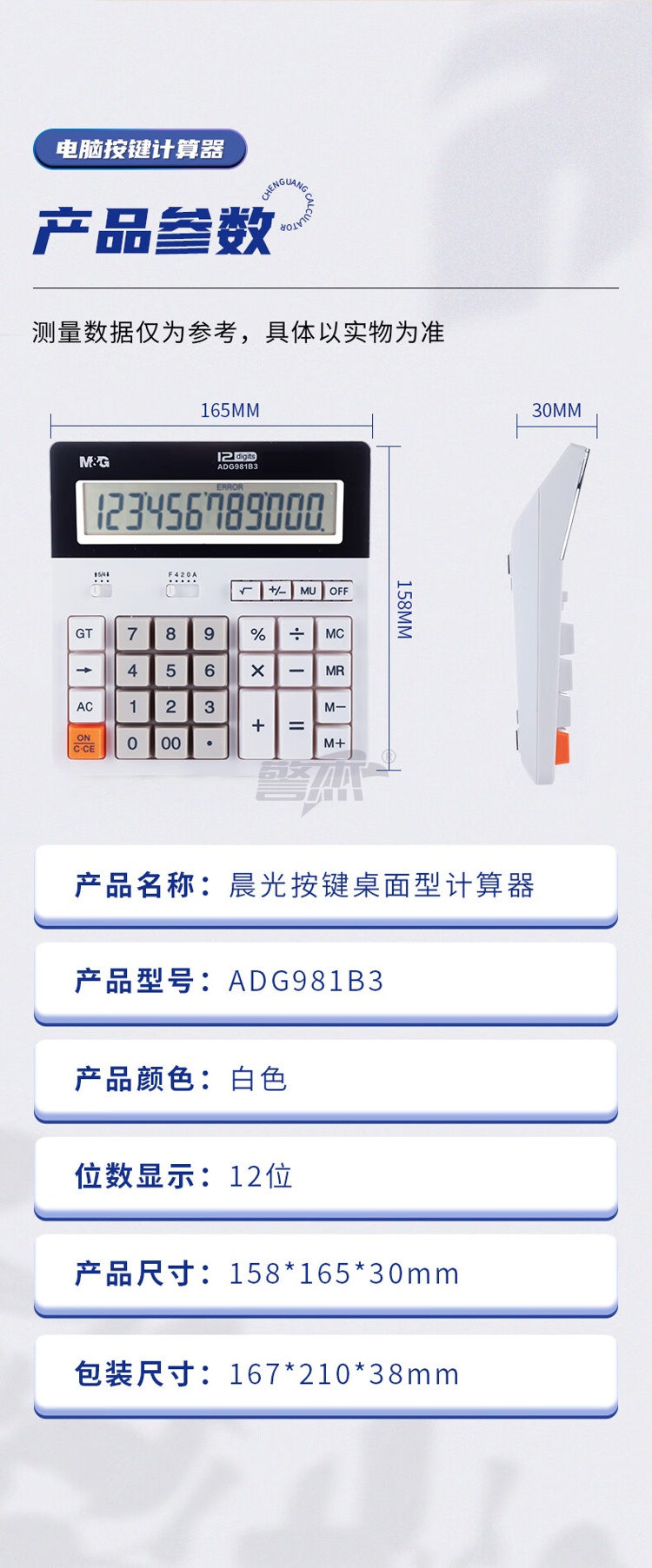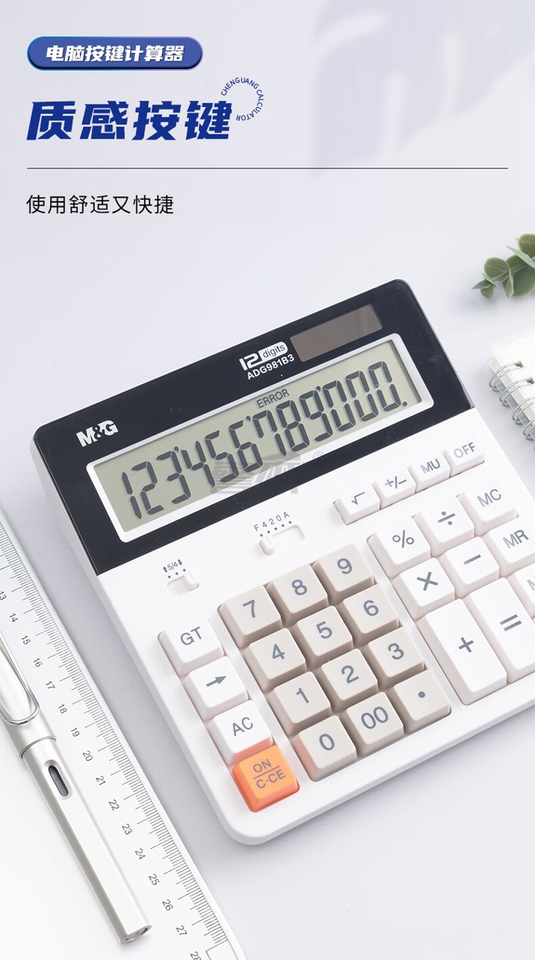 产品名称 : 晨光(M&G) 计算器 电脑按键桌面办公计算机 办公用品12位大屏幕计算器 白色单个装ADG981B3I