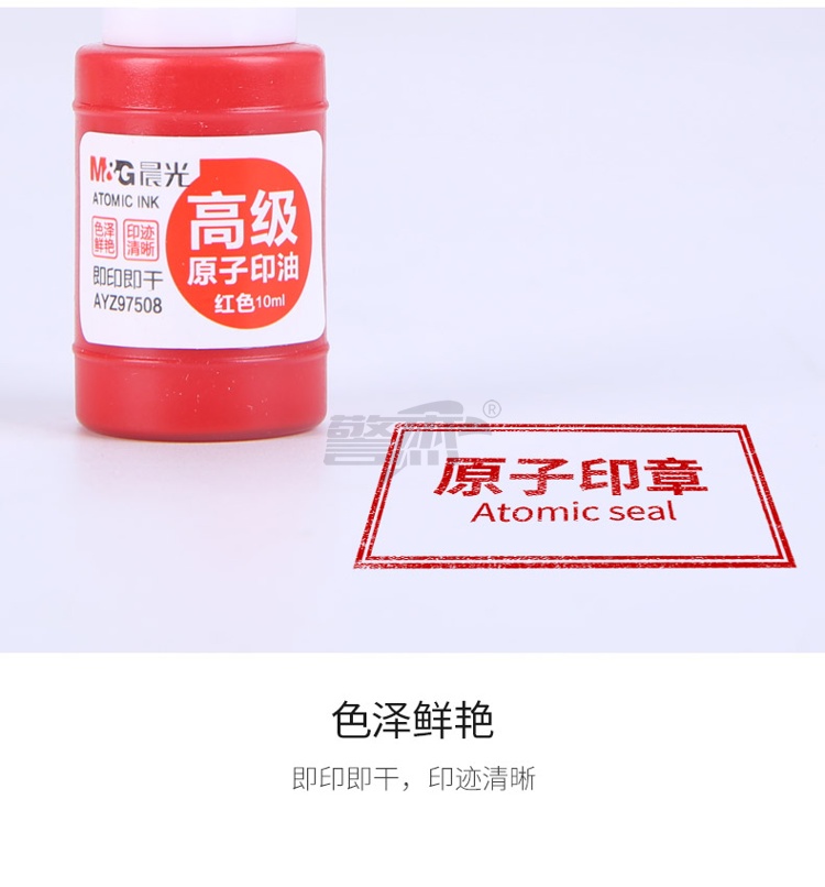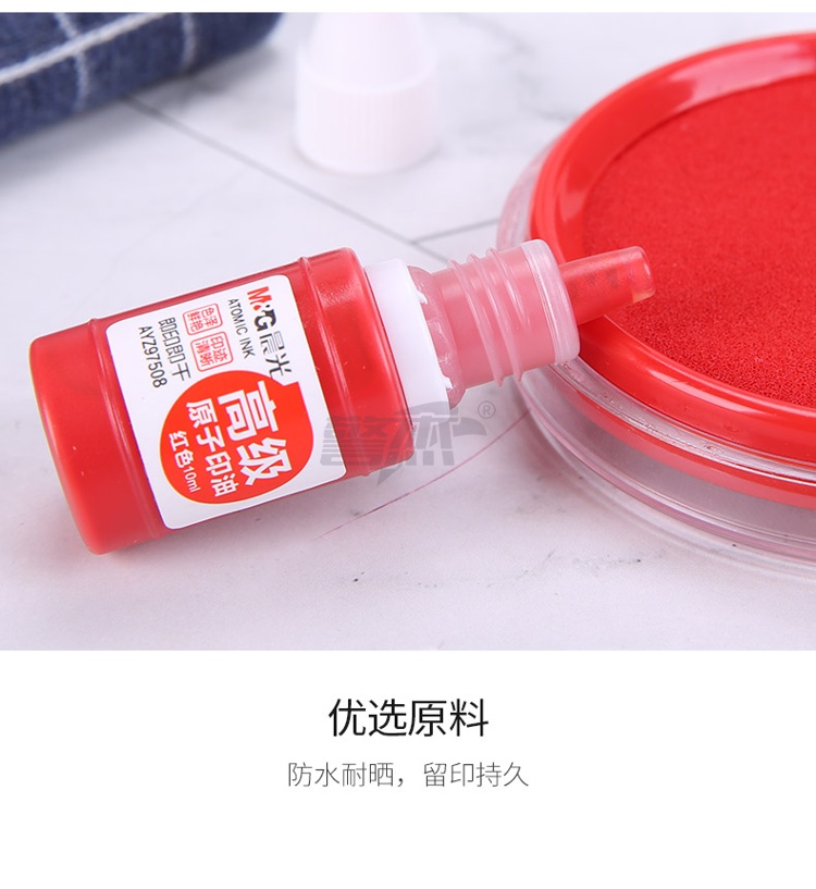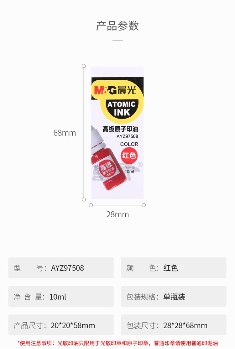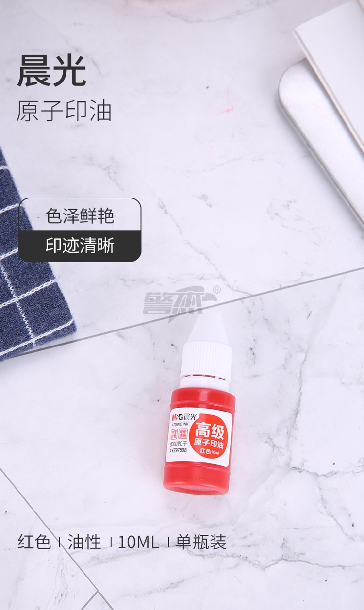 产品名称 : 晨光(M&G)文具10ml财务原子印油 红色印章印台专用印油 办公用品 单瓶装AYZ97508