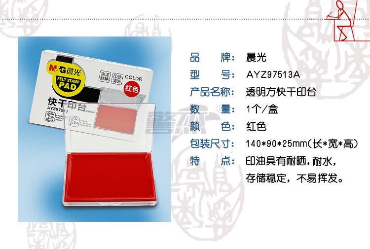 产品名称 : 晨光(M&G)文具138*88mm透明外壳方形快干印台印泥 财务专用 办公用品 红色单个装AYZ97513