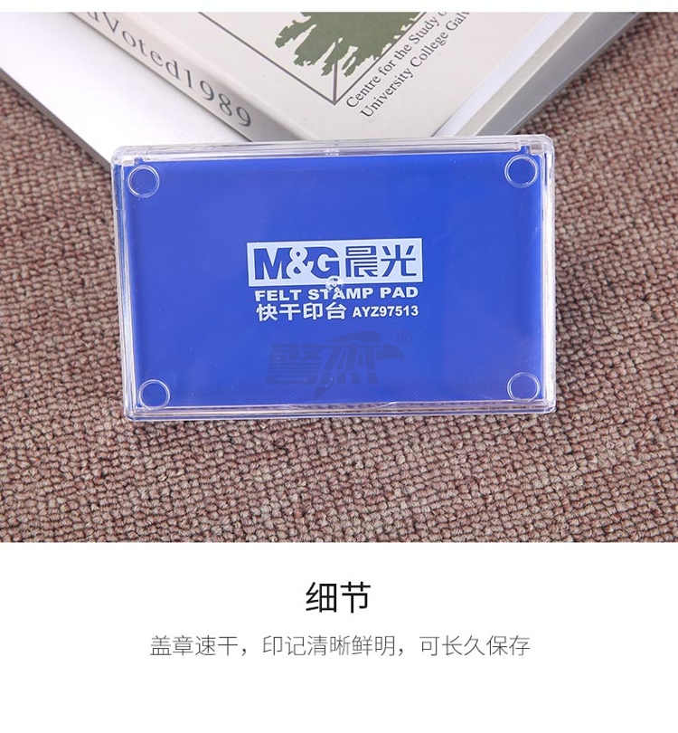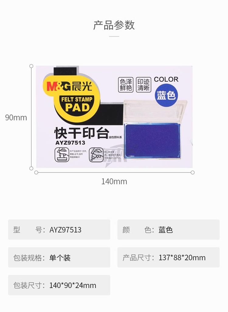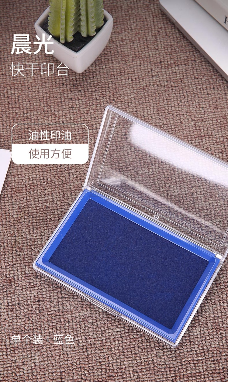 产品名称 : 晨光(M&G)文具137*88mm透明外壳方形快干印台印泥 办公用品 蓝色单个装AYZ97513