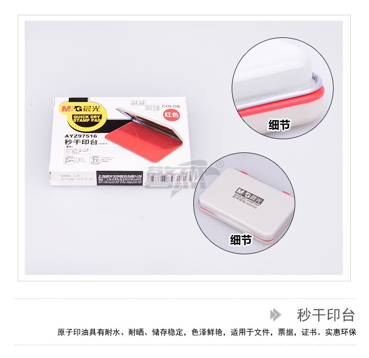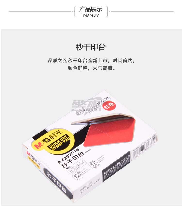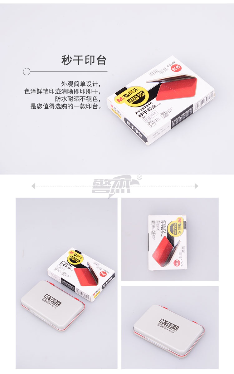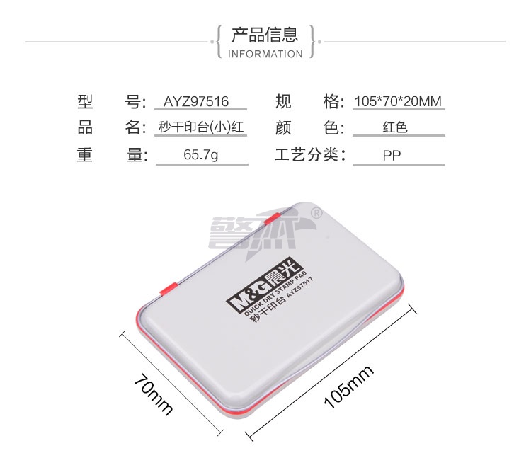 产品名称 : 晨光(M&G)文具105*70mm金属方形中号秒干印台印泥 财务专用 办公用品 红色单个装AYZ97516