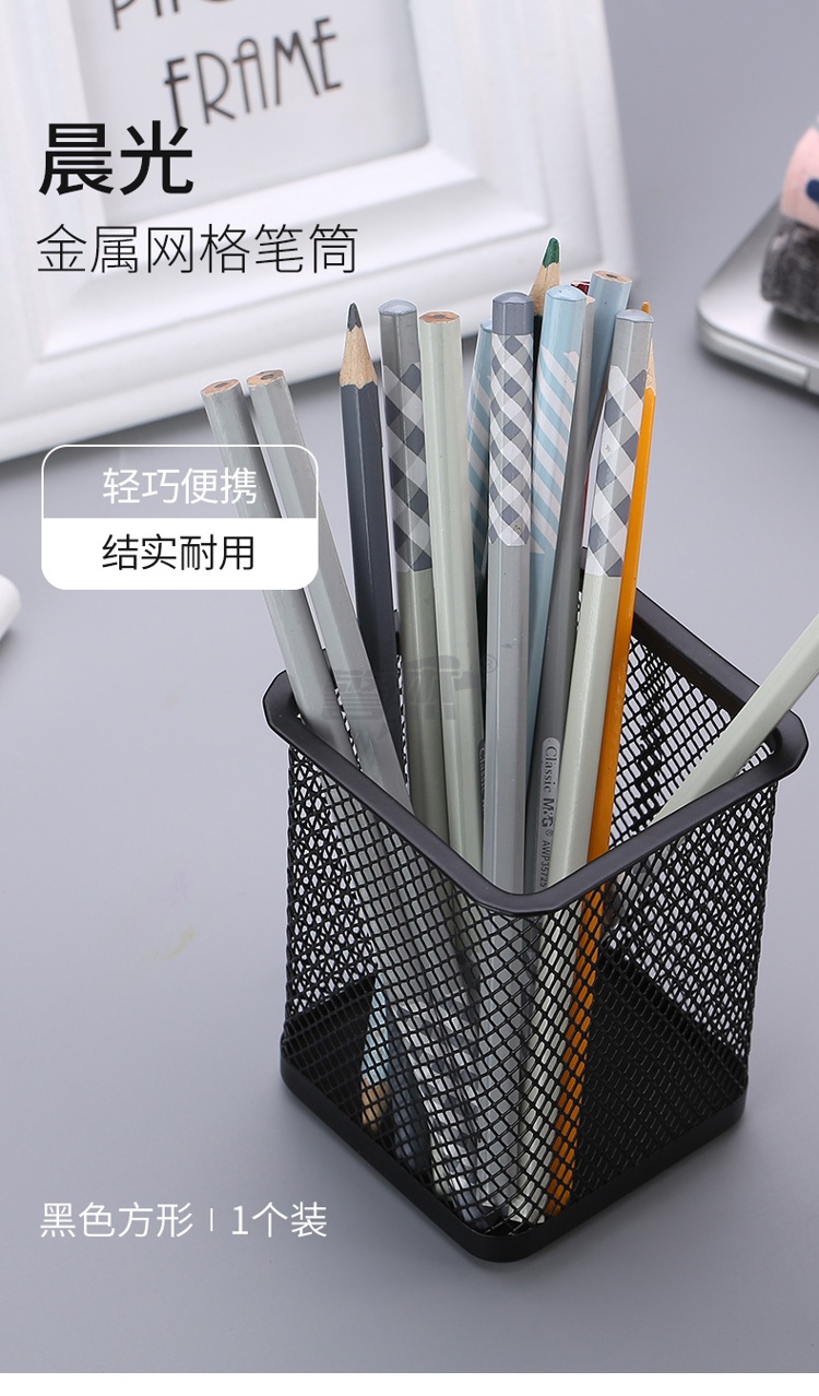 产品名称 : 晨光(M&G)文具金属时尚网格方形笔筒 学生办公用品 桌面收纳盒 黑色单个装ABT98402