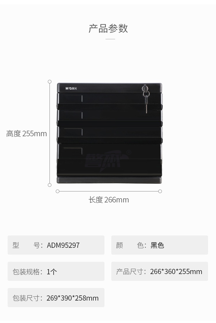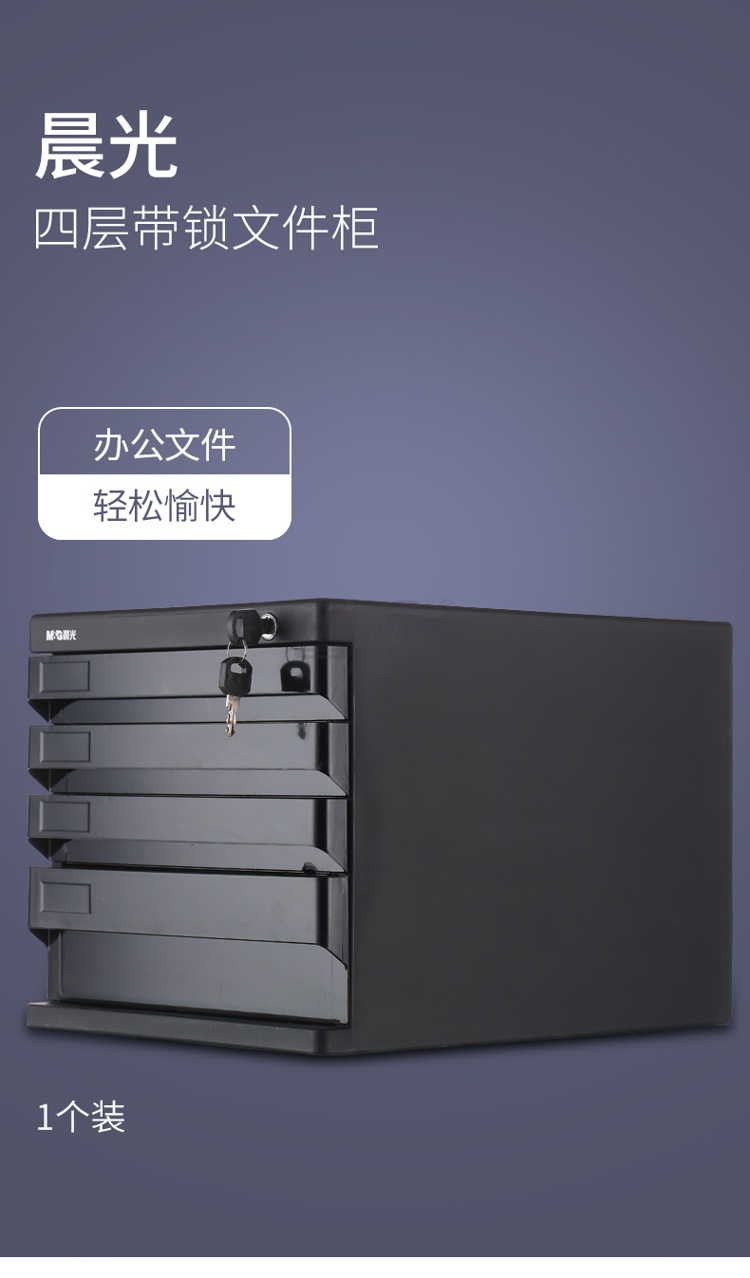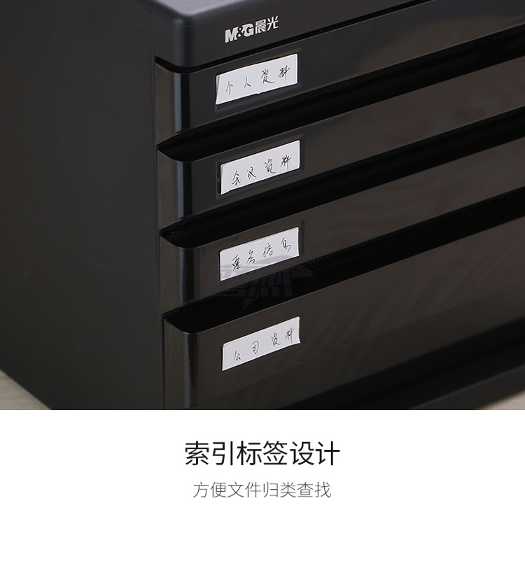 产品名称 : 晨光(M&G)文具4层桌面文件柜 抽屉式拉手A4资料收纳柜 带索引标签 办公用品 黑色单个装ADM95297
