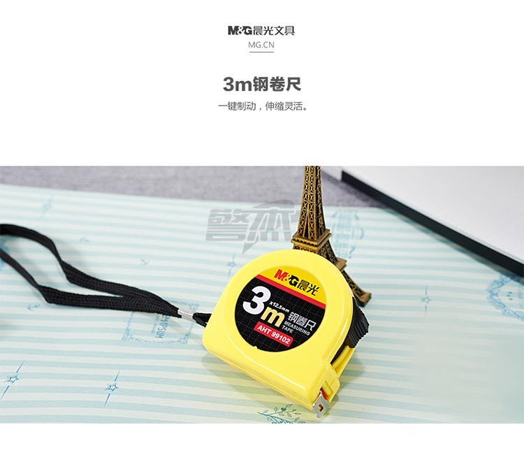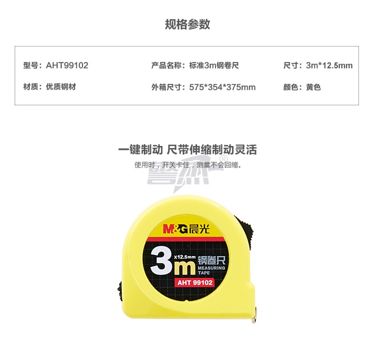产品名称 : 晨光(M&G)文具3m锁定钢卷尺 办公/家庭装修通用尺子 木工尺装修测量钢卷尺 单个装AHT99102