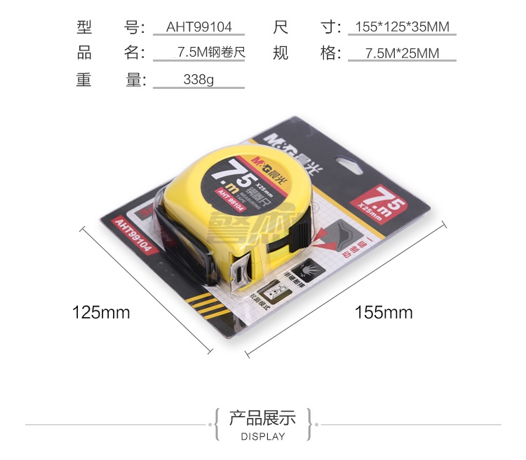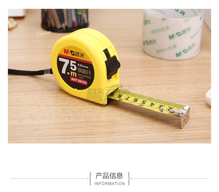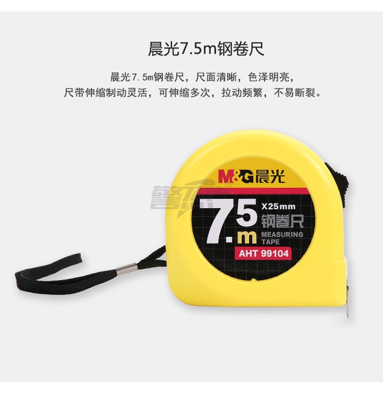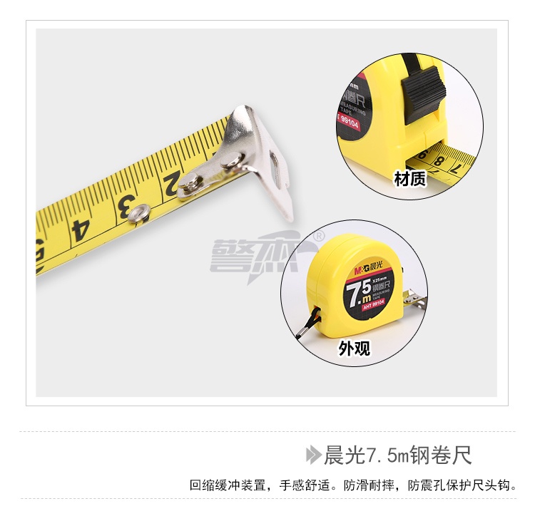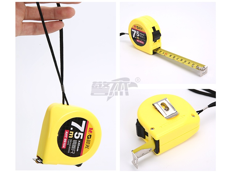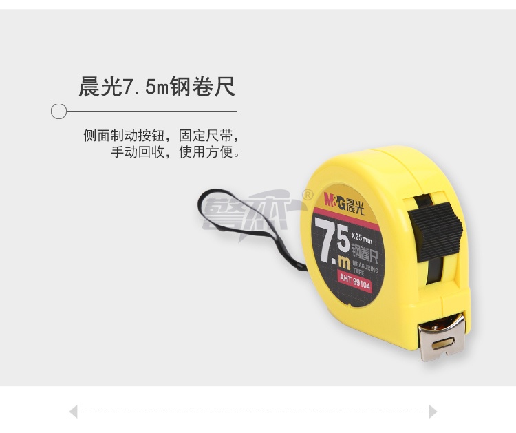 产品名称 : 晨光(M&G)文具7.5m锁定钢卷尺 办公/家庭装修通用尺子 木工尺装修测量钢卷尺 单个装AHT99104