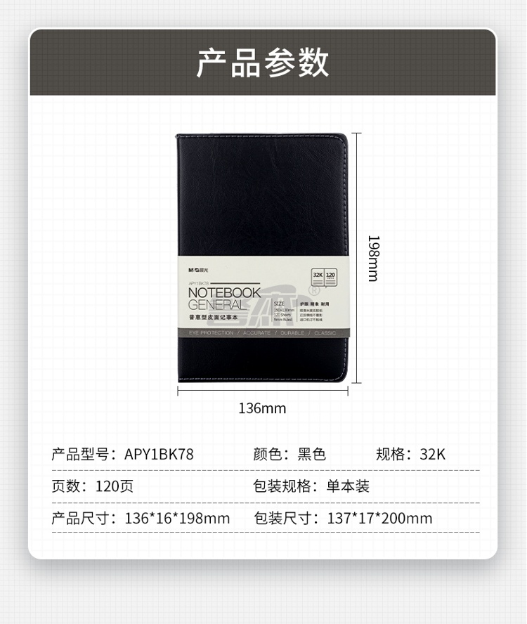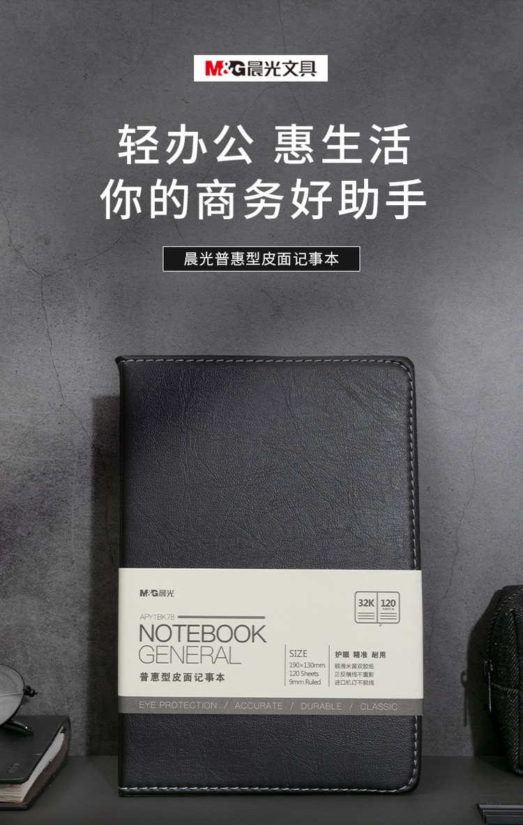 产品名称 : 晨光(M&G) 32K/120张黑色会议记录皮面本 办公笔记本 普惠型商务记事本子 单本装APY1BK78