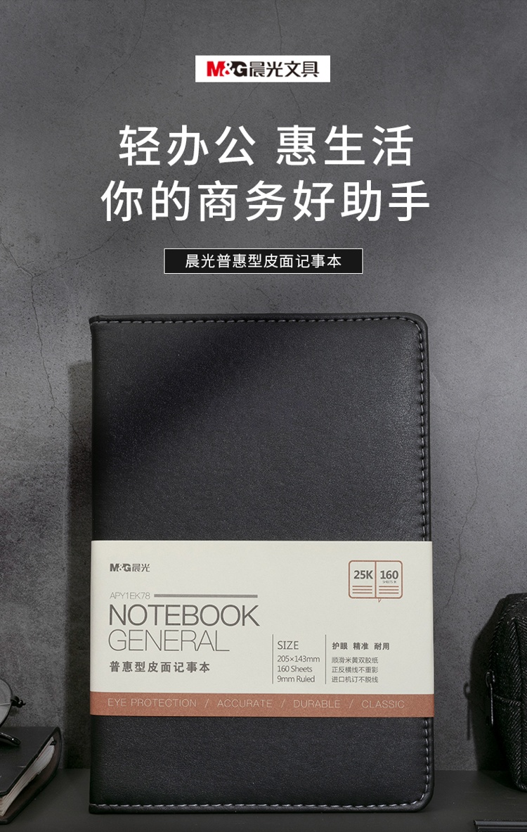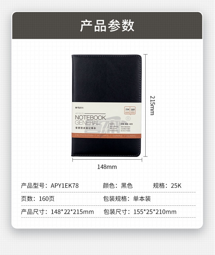 产品名称 : 晨光(M&G) A5/25K 160张黑色会议记录皮面本 办公笔记本 普惠型商务记事本子 单本装APY1EK78