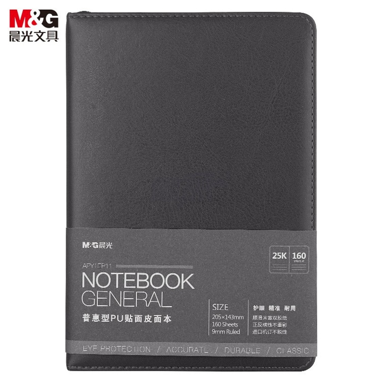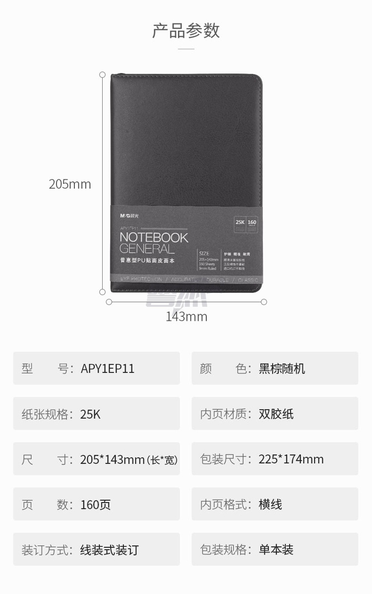 产品名称 : 晨光(M&G) A5/25K 160张黑色办公笔记本 会议记录皮面本 普惠日记本商务记事本子 单本装颜色随机APY1EP11