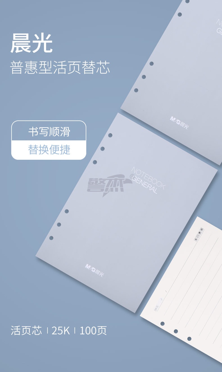 产品名称 : 晨光(M&G) 25K/6孔横线活页本子替芯 线圈纸 活页笔记本替换内芯 100页/包APY9JT74