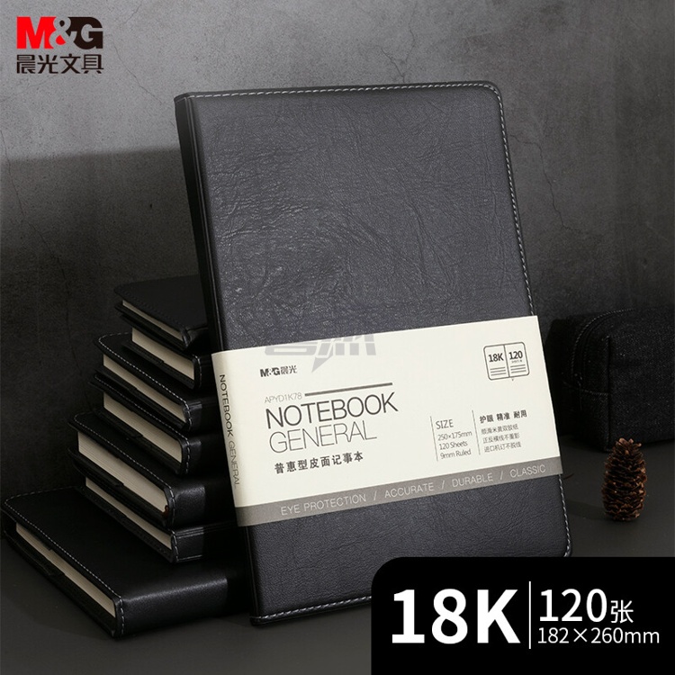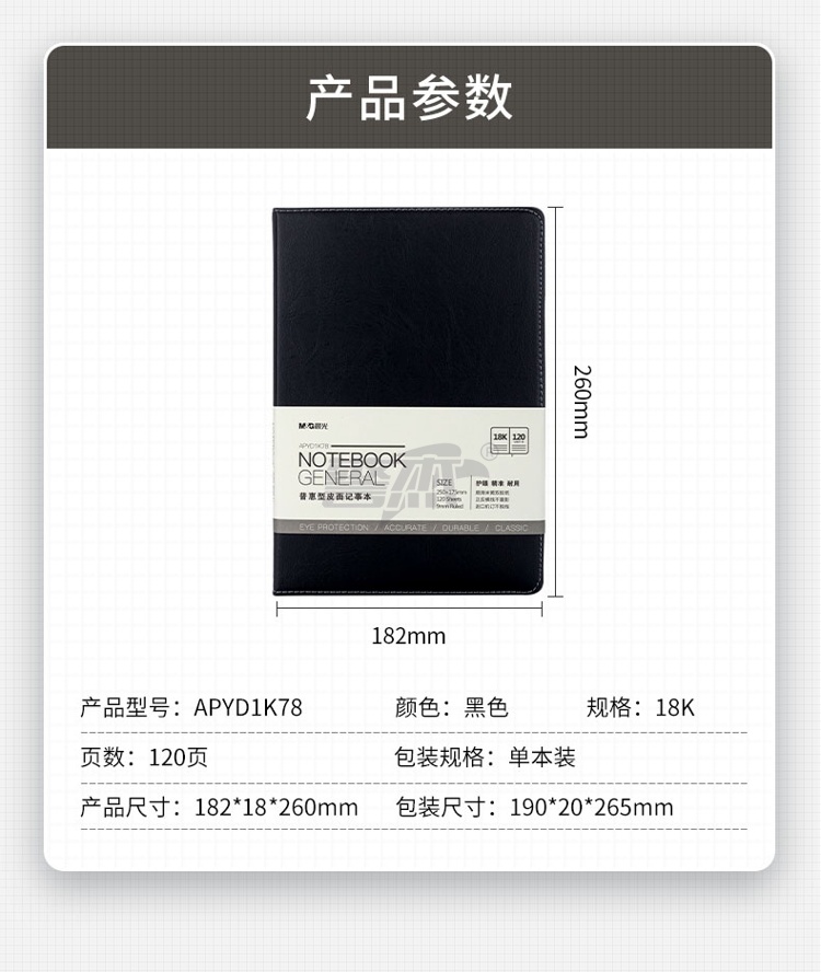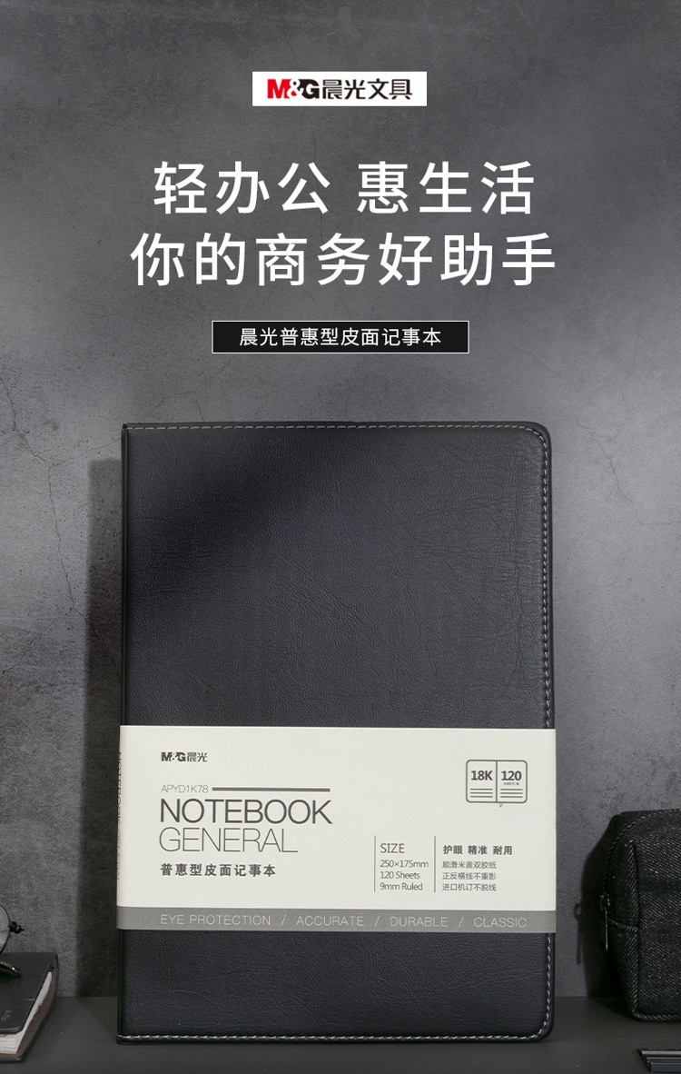 产品名称 : 晨光(M&G) B5/18K 120张黑色办公笔记本 会议记录皮面本 普惠型商务记事本子 单本装APYD1K78