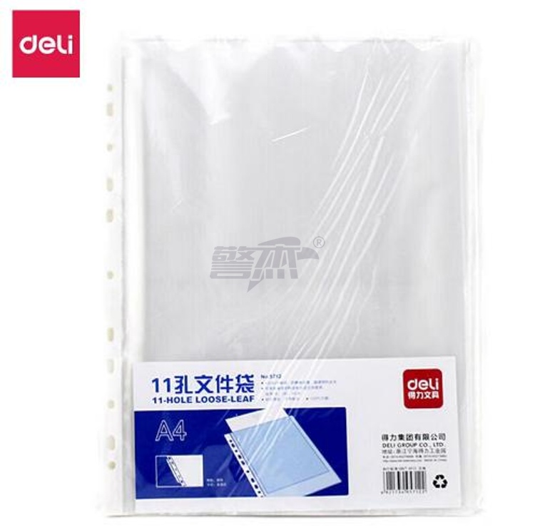 产品名称 : 得力(deli) A4文件夹带孔 文件袋资料夹快劳夹 两孔活页夹 打孔机 办公用品 5712 11孔文件袋(100只)