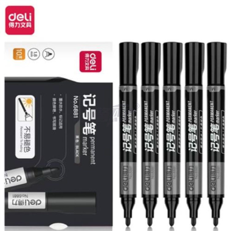 产品名称 : 记号笔 得力 6881 黑色记号笔 1.5mm 10支/盒