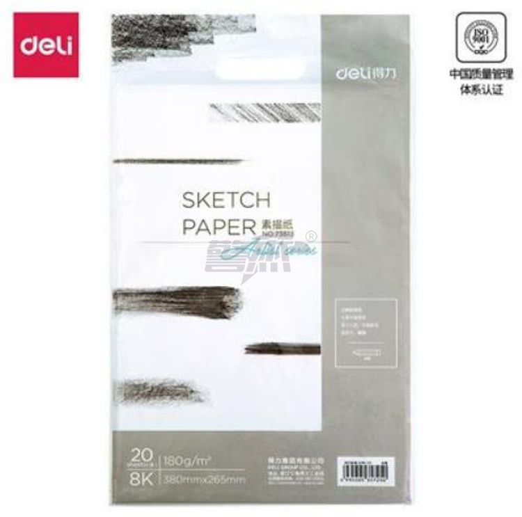 产品名称 : 得力(deli) 8K 素描纸 加厚180g 彩色铅笔画画20张/包