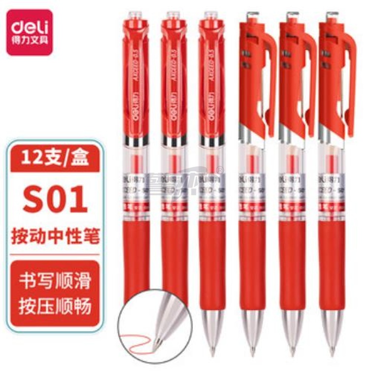 产品名称 : 得力S01中性笔0.5mm弹簧头(红)12支/盒