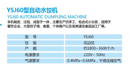 产品名称 : 银鹰自动水饺机YSJ60(40-60个/分钟)