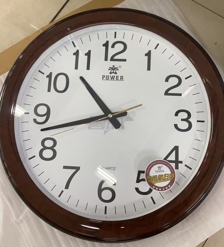 产品名称 : POWER霸王挂钟表 大号中式仿木客厅圆形石英钟日历挂墙48cm0572