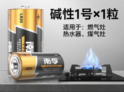 产品名称 : 南孚(NANFU) 1号 碱性干电池1粒 1.5V 适用燃气灶煤气灶热水器手电筒等LR20
