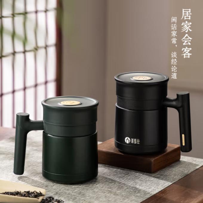 茶马仕富光保温杯紫砂内胆泡茶杯带把手男士商务水杯
