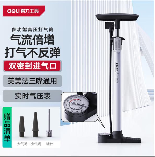 产品名称 : 得力(deli)DL880005 多功能高压打气筒 双泵带表 470*165mm 单位个