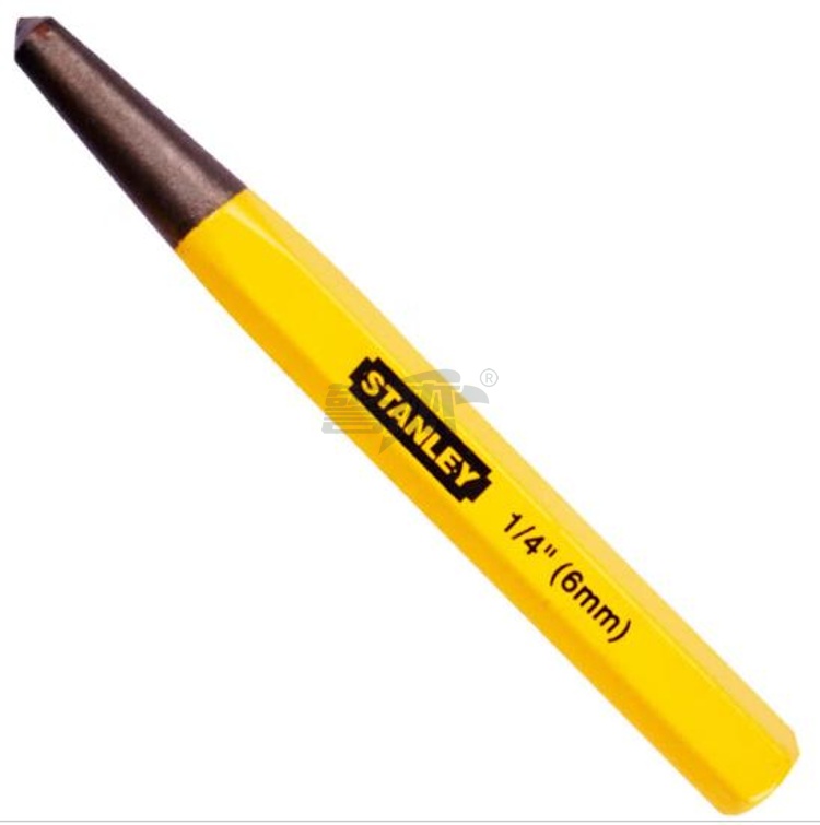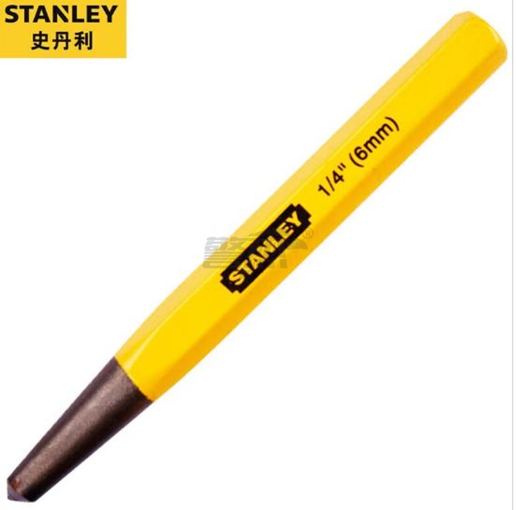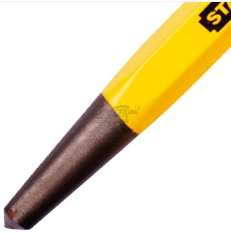产品名称 : 史丹利(STANLEY)中心冲钻孔中心定位冲钳工专用划线冲凿高硬度家用圆锥冲五金工具 中心冲 6x100MM