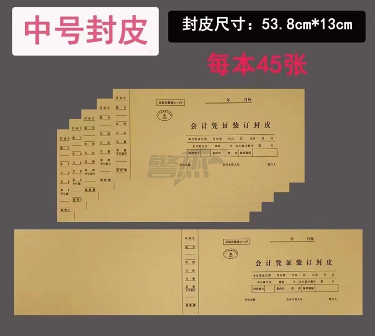 产品名称 : 会计凭证封皮 中号 53.8cm*13cm 45张/本