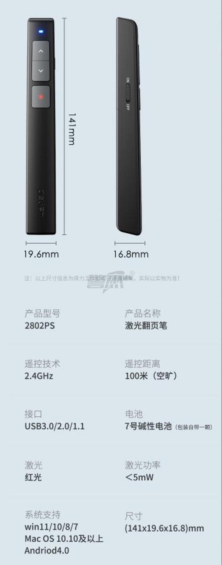 产品名称 : 得力2802PS激光翻页笔(黑)(支)