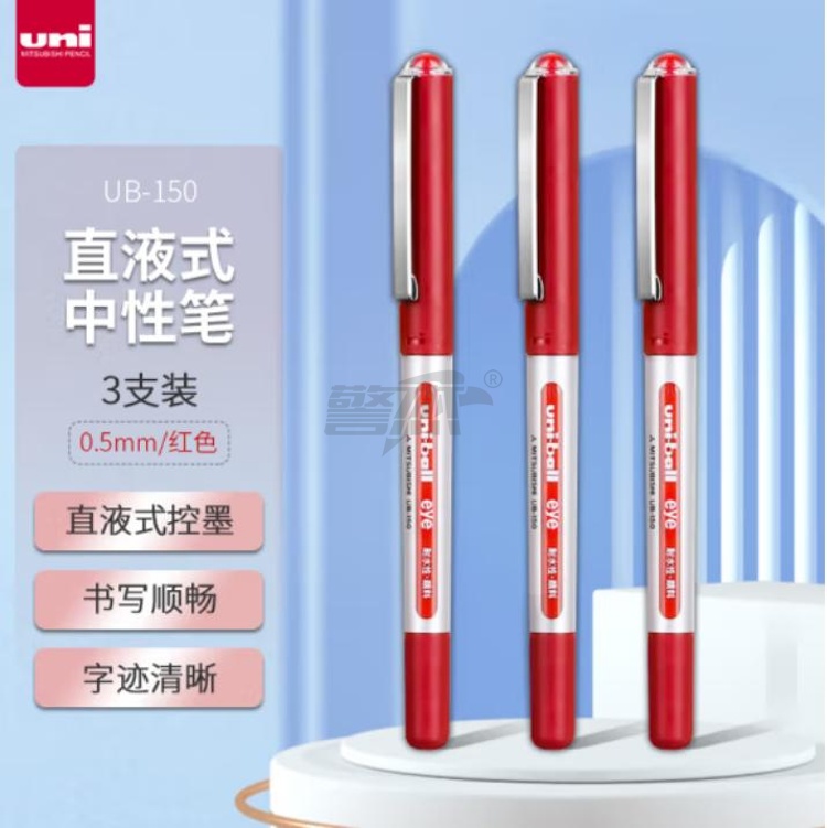 产品名称 : uni三菱 uni-ball EYE红色中性笔高颜值0.5mm红笔签字笔商务直液式学生水笔水性笔套装 UB-150 3支