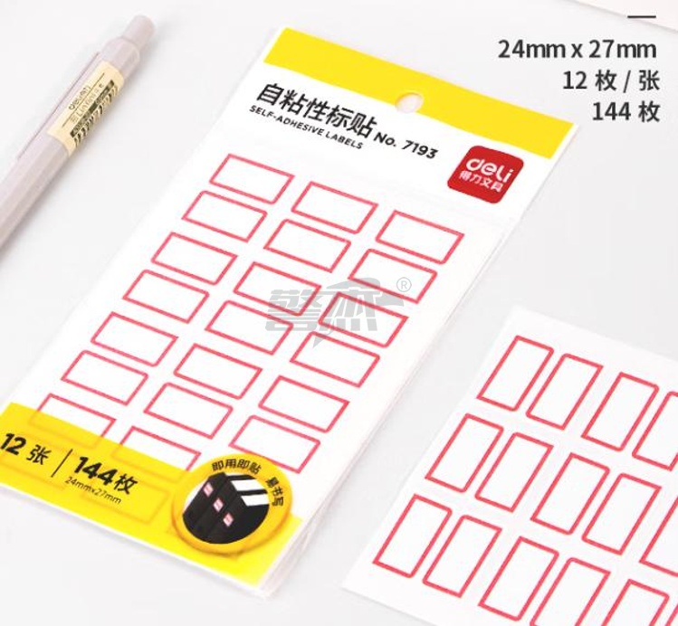 产品名称 : 得力7193 144枚24*27mm红框不干胶标签贴纸