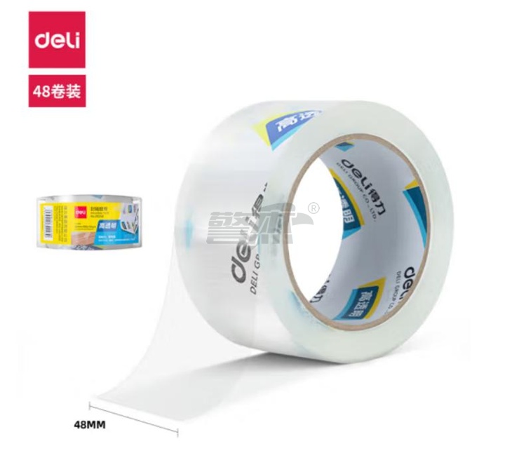 产品名称 : 得力(deli)30248高品质高透明封箱胶带打包胶带 48mm*100y*50um(91.4m/卷) 1卷装