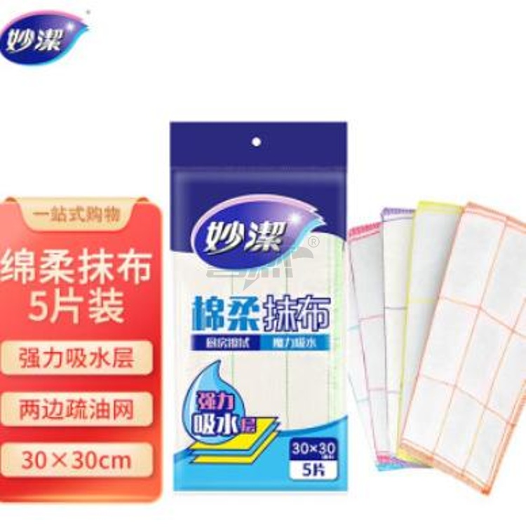 产品名称 : 妙洁 棉柔抹布 吸水不掉毛加厚洗碗布 清洁纤维巾不沾油百洁擦拭布 30*30cm 5片装