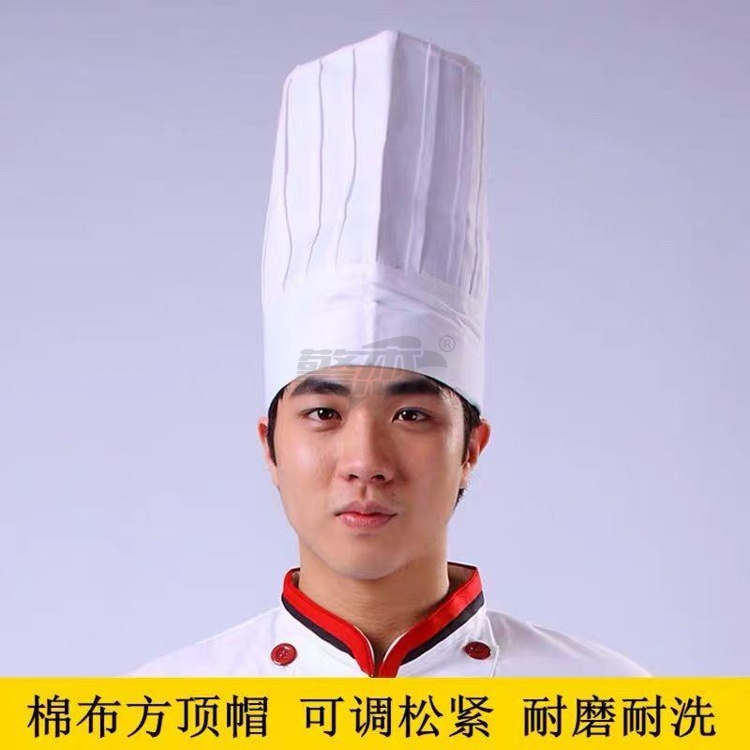 产品名称 : 厨师布帽子男酒店餐厅饭店咖啡厅学校食堂厨房厨师工作帽子棉方顶