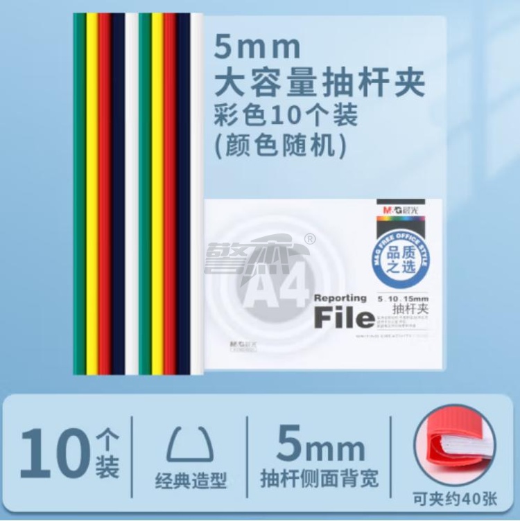产品名称 : 晨光(M&G)抽杆夹A4透明三角杆ADM94519文件夹5mm彩色抽杆10个装颜色随机