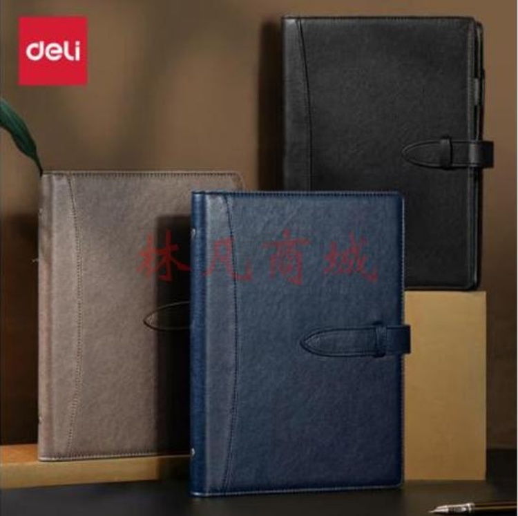 产品名称 : 得力(deli)经典活页皮面本笔记本子 商务办公插袋皮面本记事本日记本扣带办公用品文具 16K100张0