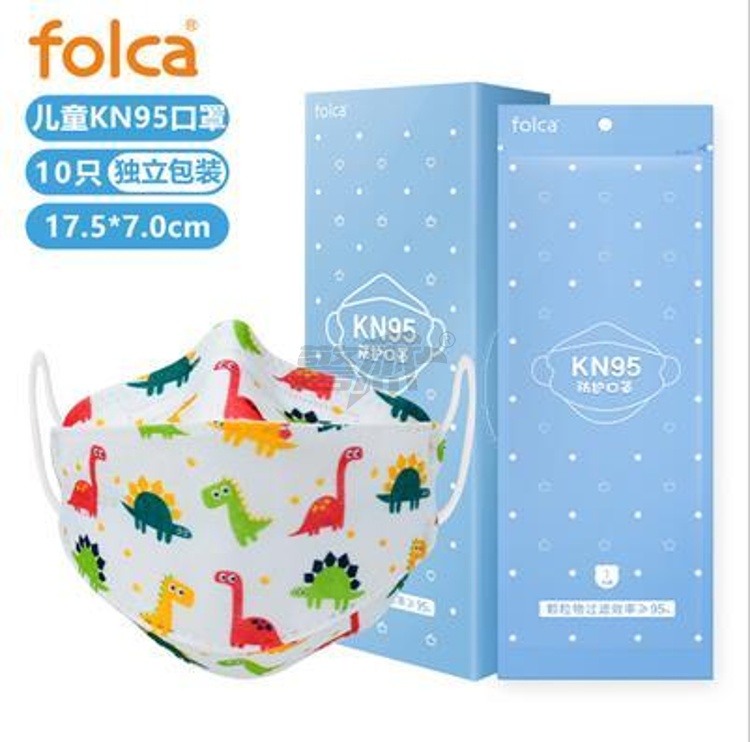 产品名称 : folcaKN95儿童柳叶款口罩10只/盒175*70mm单片独立装防雾霾沙尘暴PM2.5一次性使用口罩花色卡通色折叠耳戴式
