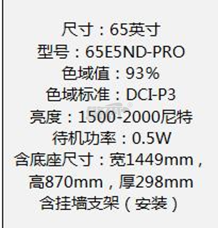 产品名称 : 海信电视65E5N