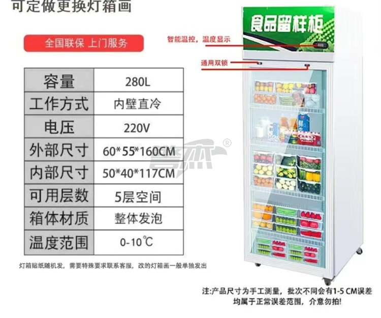 产品名称 : 幼儿园食品留样柜双锁温度显示280L